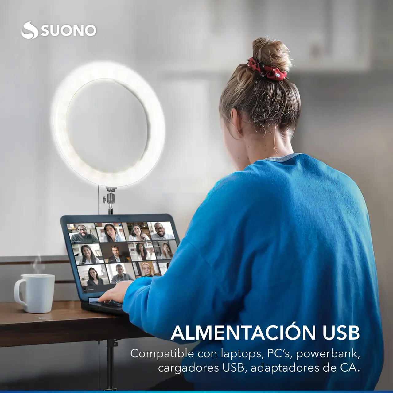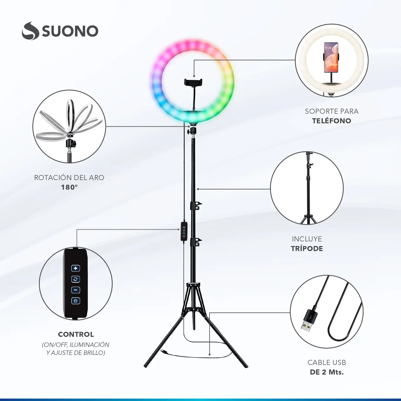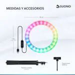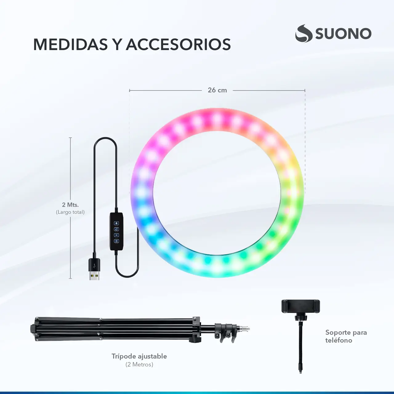 Aro De Luz Rgb Suono Usb 15 Colores Ajustables 26 Cm