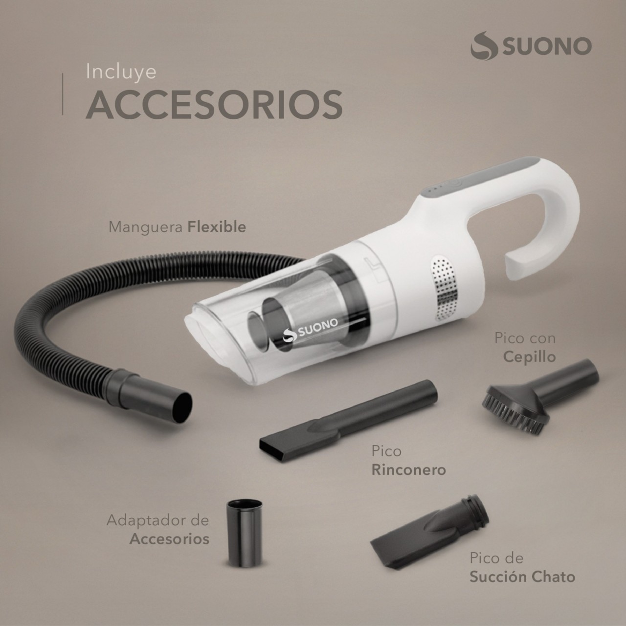 Aspiradora De Mano Suono Inalámbrica Con Accesorios 670Ml