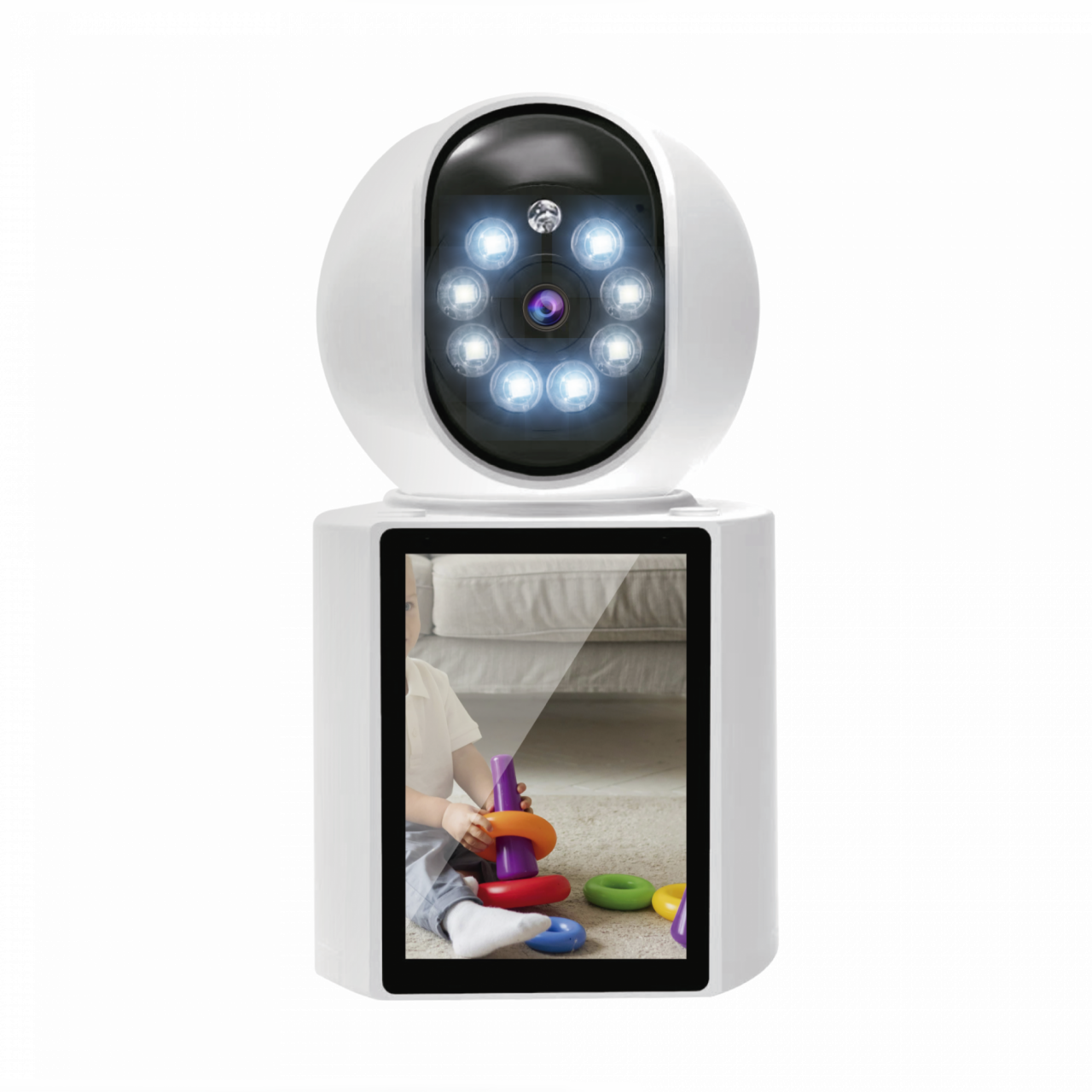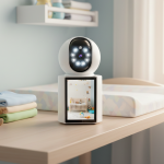 Cámara de seguridad inteligente. Visión nocturna y app móvil. Permite llamadas y monitoreo remoto.