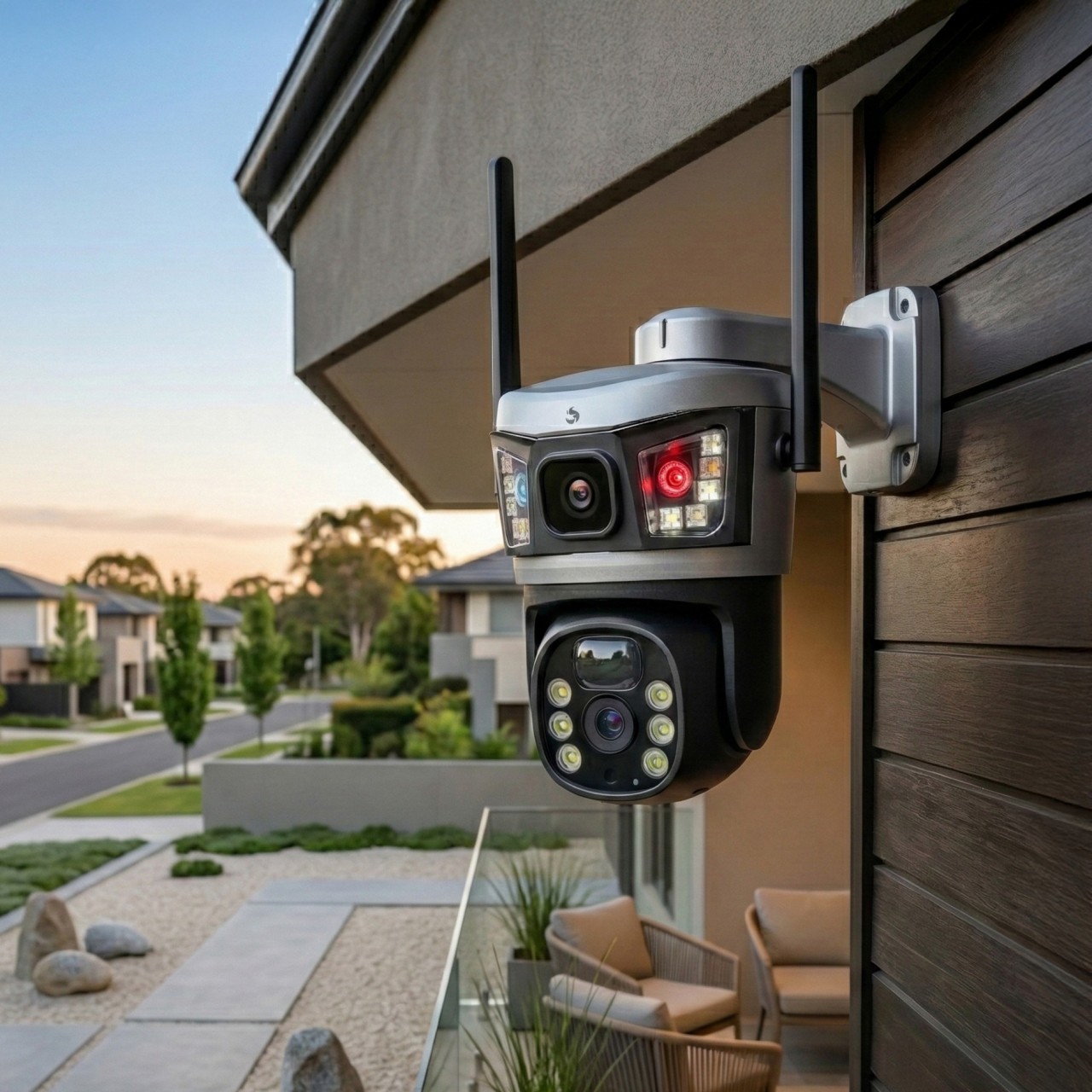 Visualización multiusuario Detección de intrusión humana Audio bidireccional Visión diurna y nocturna Conexión inalámbrica Almacenamiento en la nube Resistente al agua