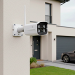Cámara IP exterior con visión nocturna. Resolución de 2 megapíxeles. Compatible con app móvil.