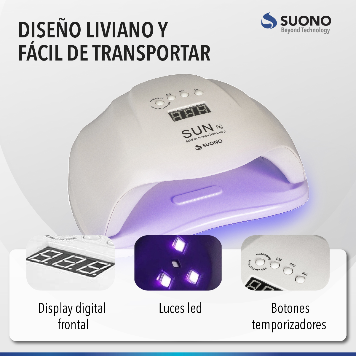 Cabina De Uñas 120W Profesional Suono Snbc-1000 Luz Led Uv