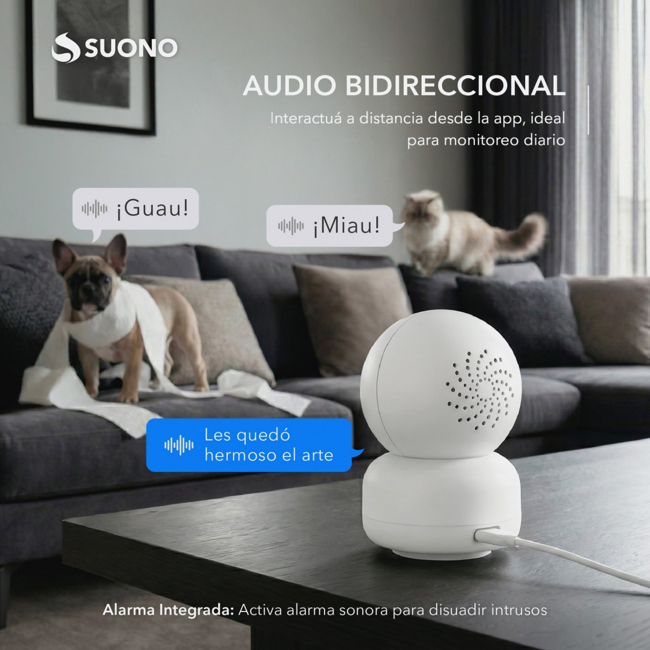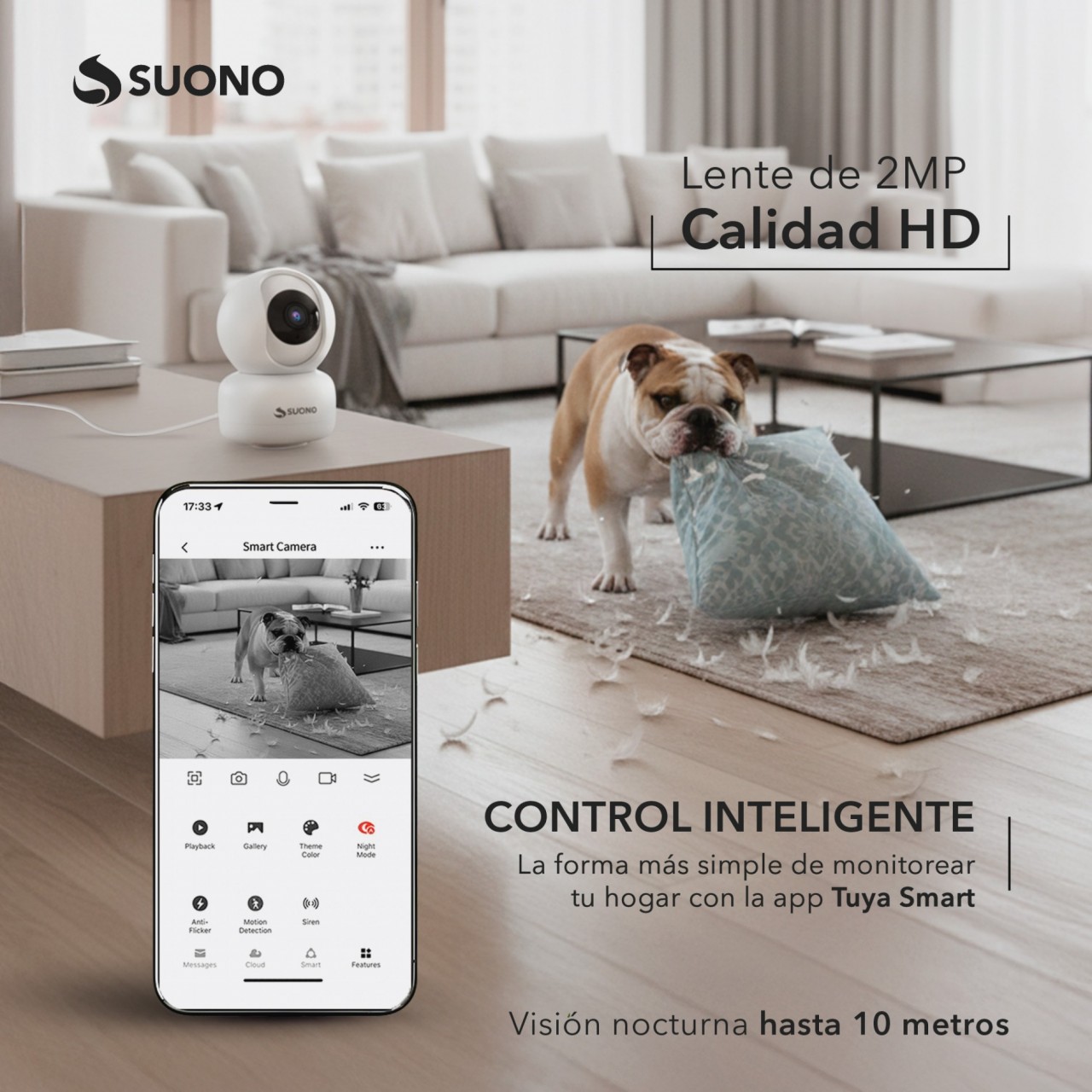 Lente de alta calidad de 2 megapíxeles. APP Tuya Smart Con control de paneo 360° e inclinación de 60