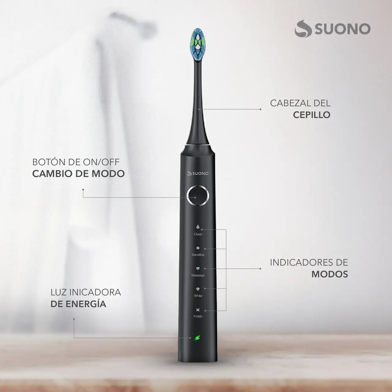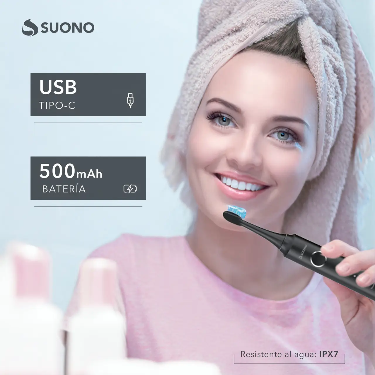 Cepillo De Dientes Eléctrico Suono Premium Usb-C Negro