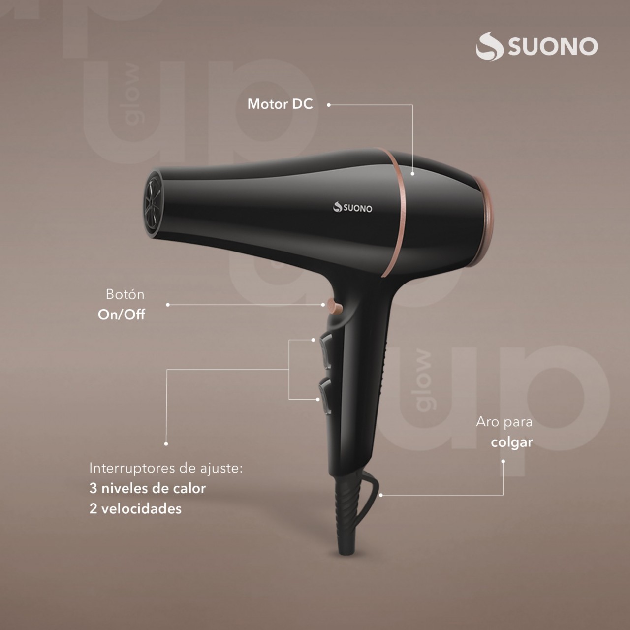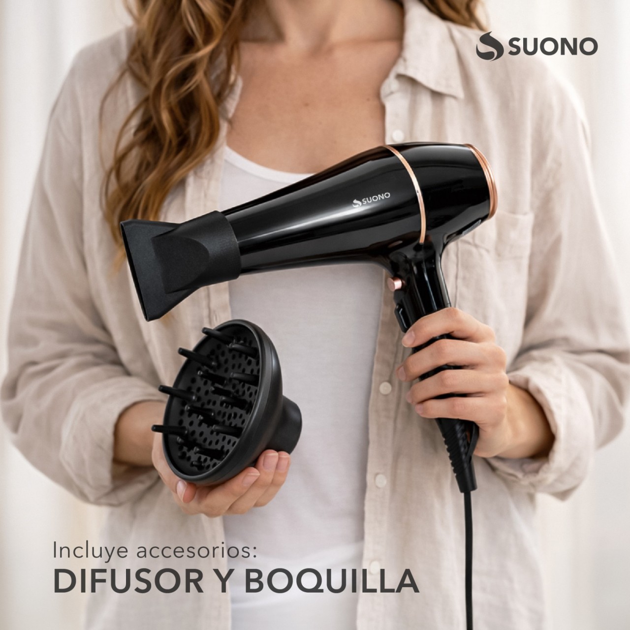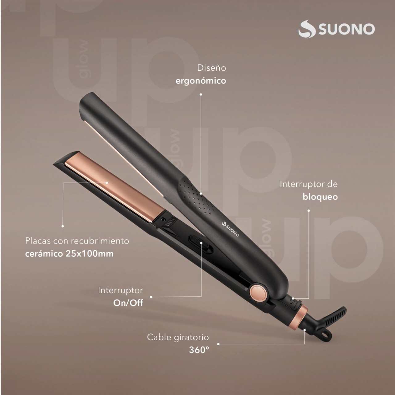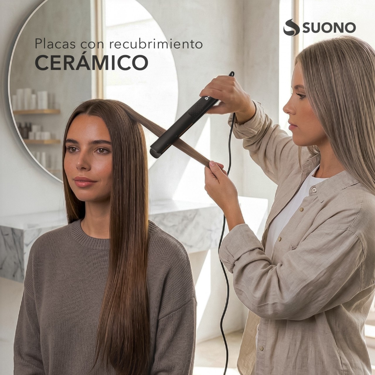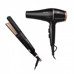Combo de belleza con planchita de cerámica y secador de pelo de 1800W. Ideal para cuidado y peinado del cabello.