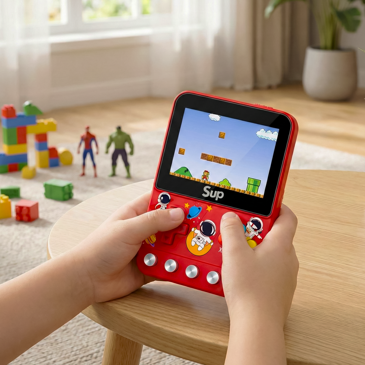 Consola portátil con 400 juegos clásicos. Batería recargable y controles ergonómicos. Compacta y fácil de transportar.