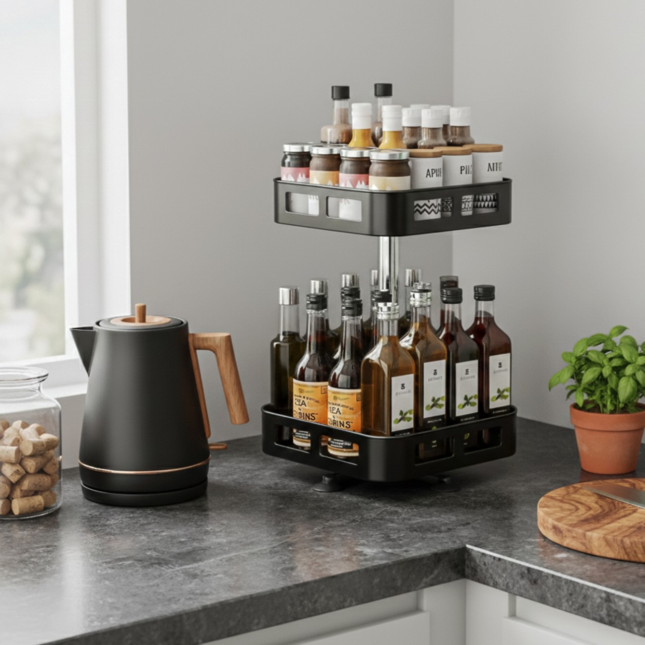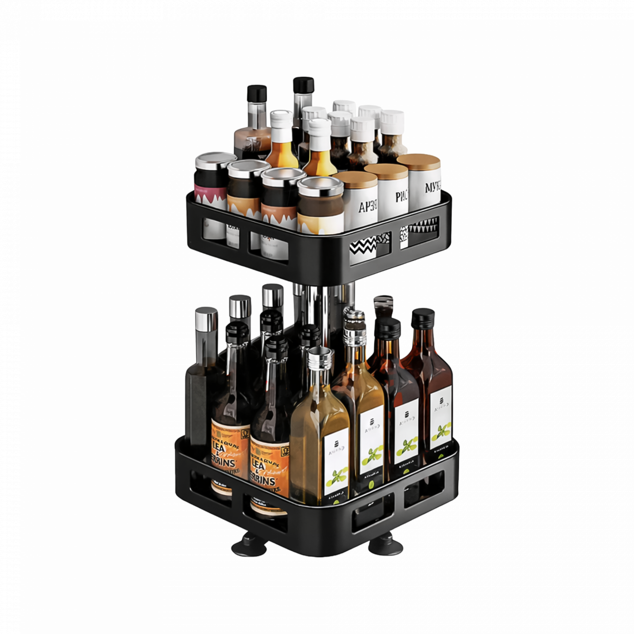 Especiero 2 pisos de 360° Estantes cuadrados de 24 x 24 cm Alto de 46cm