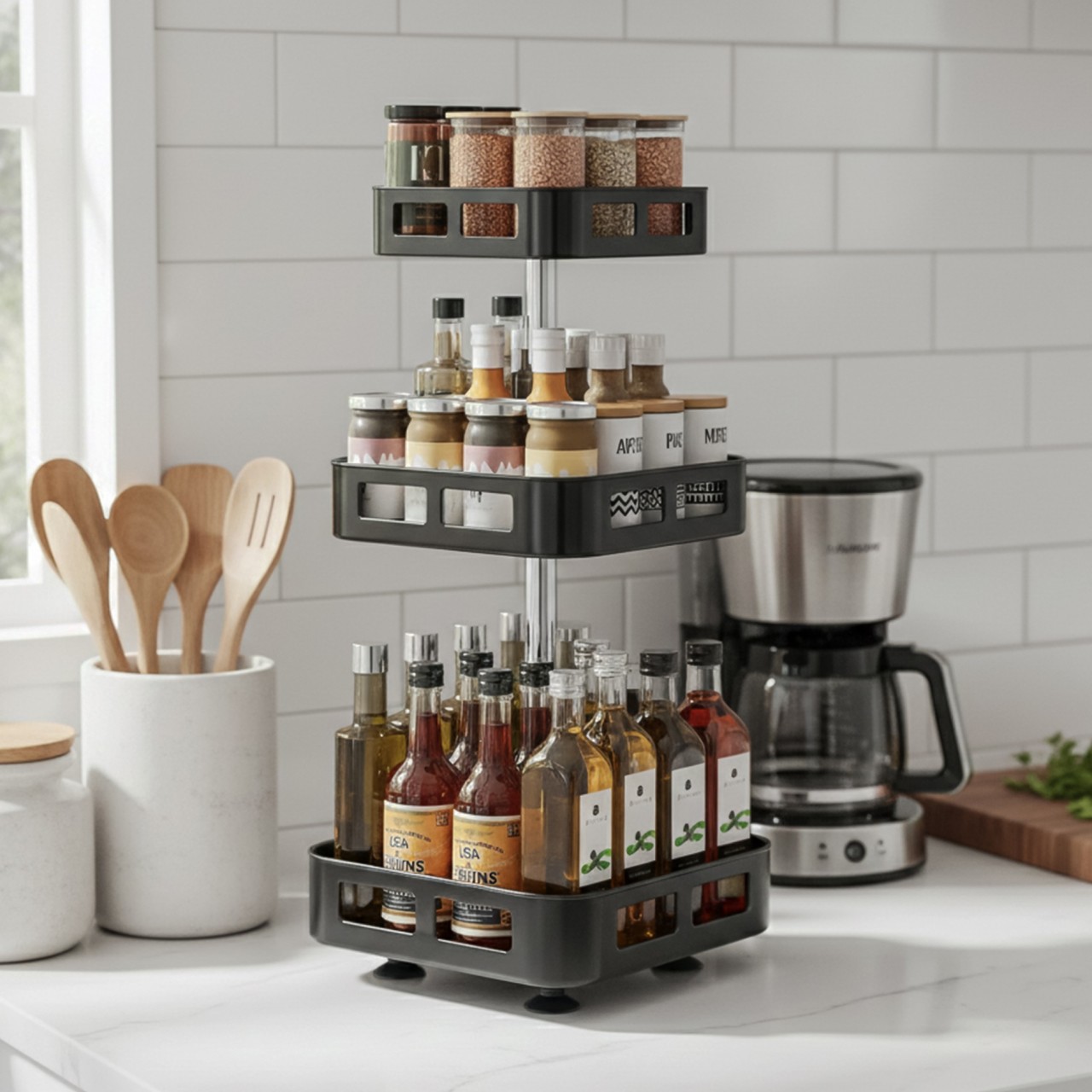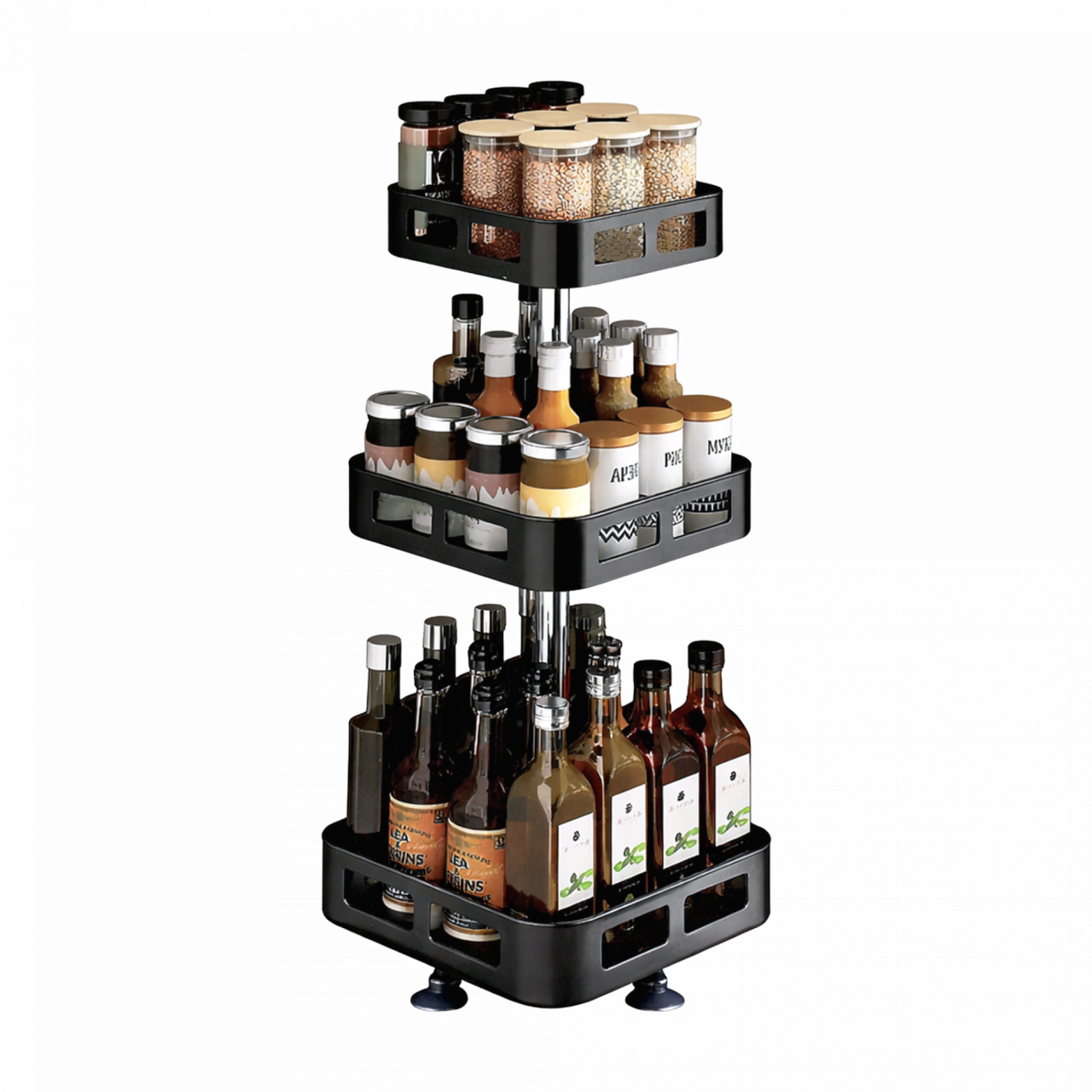 Especiero de 3 pisos 360° Estantes cuadrados de 25 x 25 cm Alto de 55cm