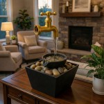 Fuente de agua decorativa para interior con efecto de grifo flotante, iluminación LED y piedras.