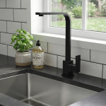 Grifería monocomando de cocina con diseño moderno. Fabricada en metal con cierre cerámico.