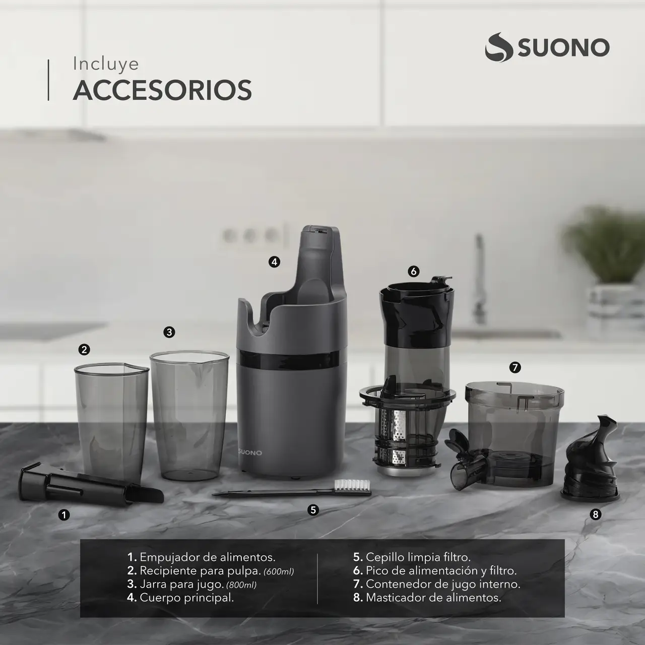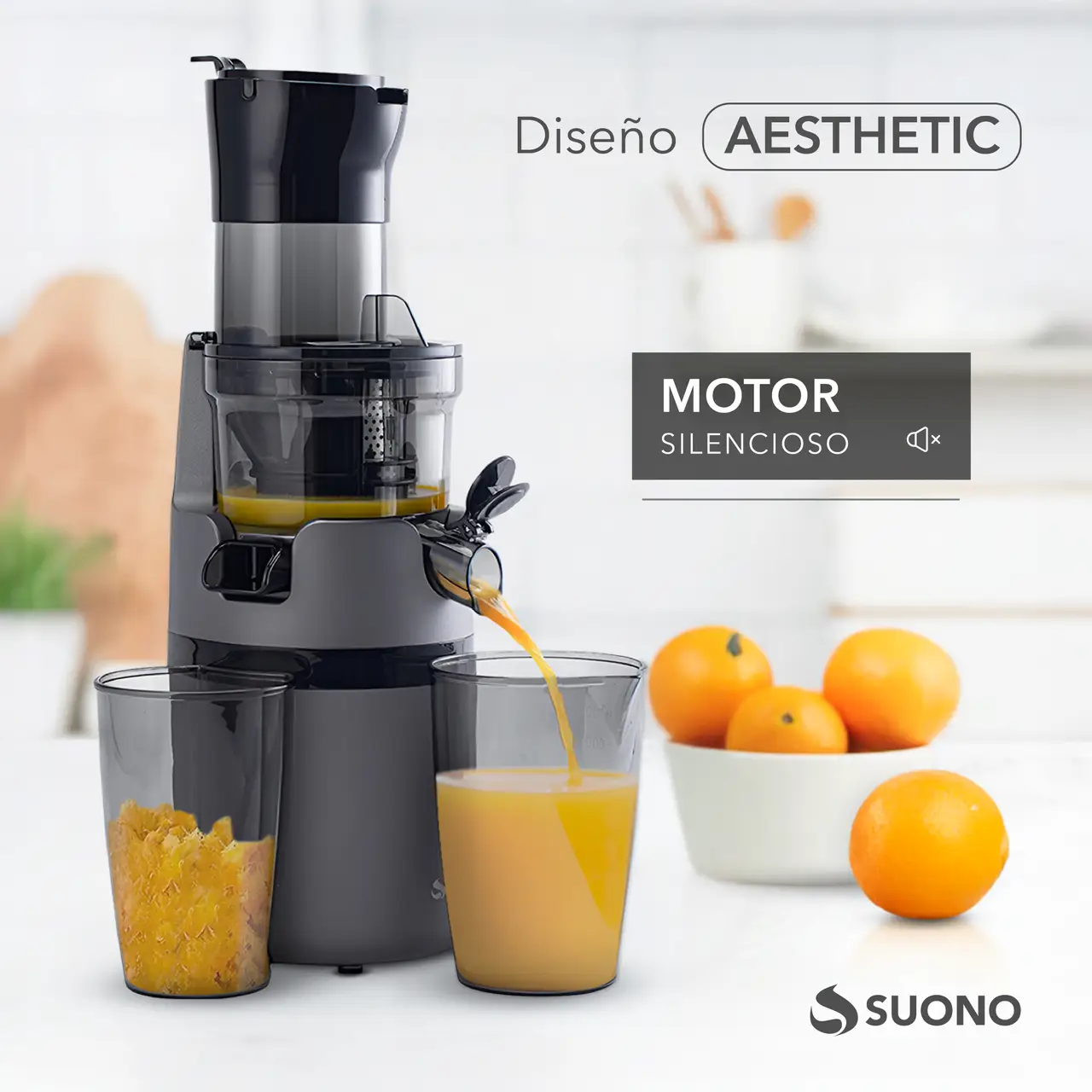 Juguera de masticación vertical de 220W. Extrae jugos naturales conservando mejor los nutrientes y el sabor.