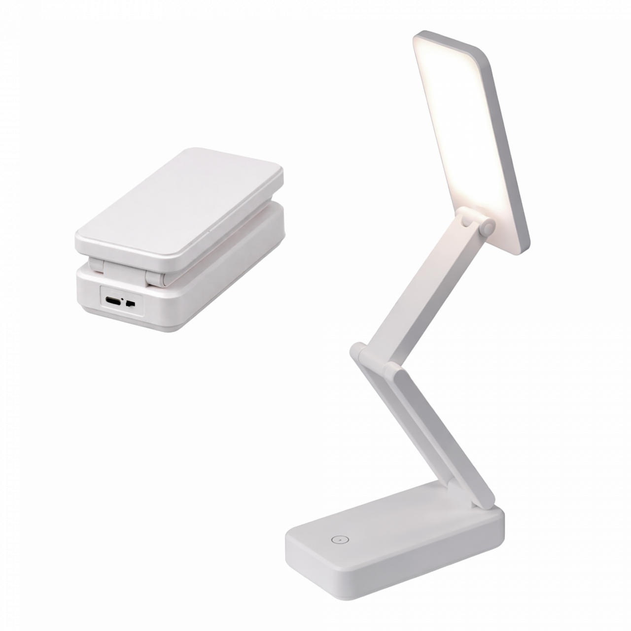 Lámpara de mesa recargable por USB. Ideal para escritorio, dormitorio o lectura.