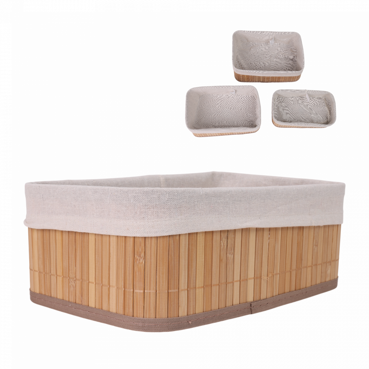 Set de 3 Unidades Diseño Rectangular Exterior de madera de bambú con cubierta interna de tela