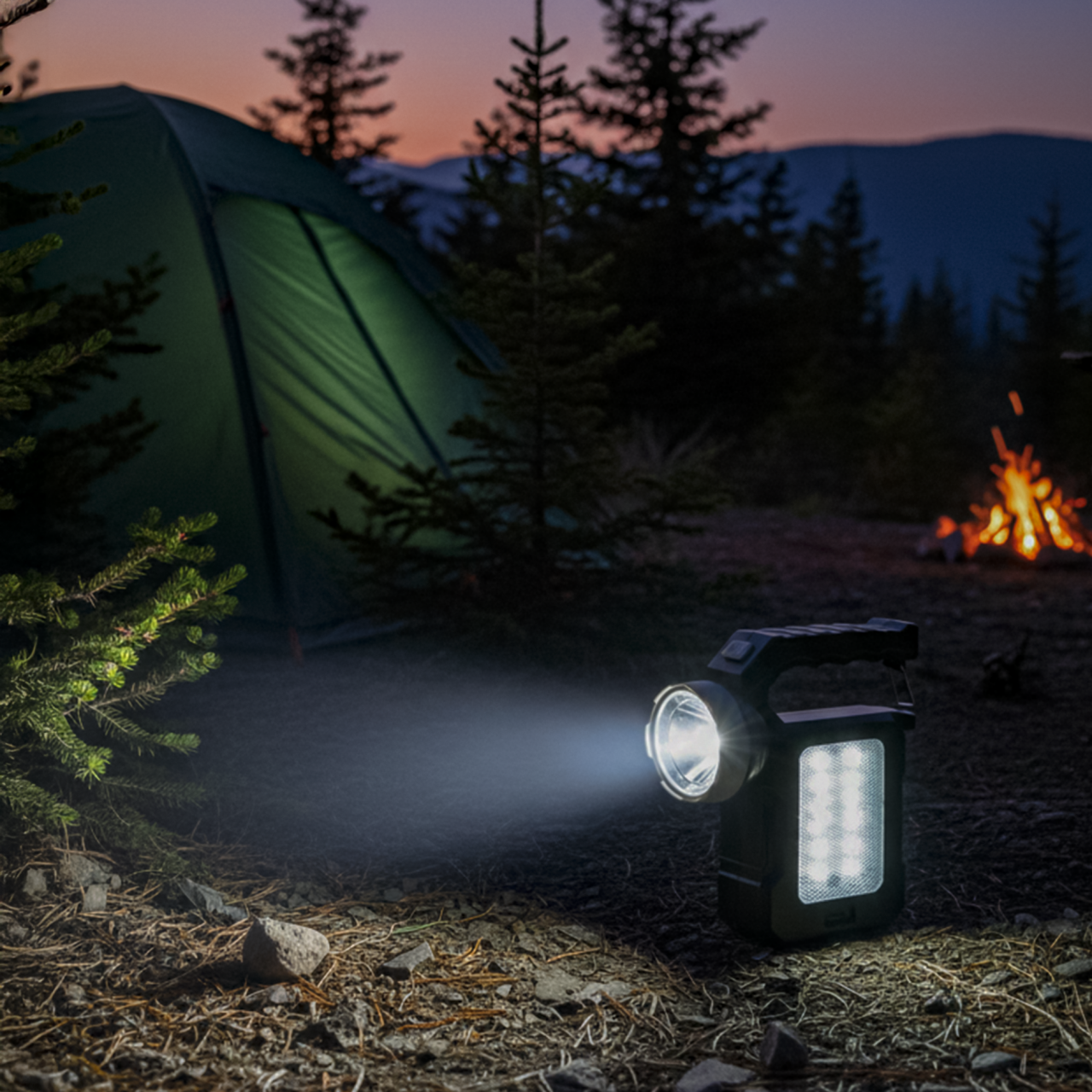 Linterna portátil con reflector. Brinda iluminación potente para uso exterior o emergencias.