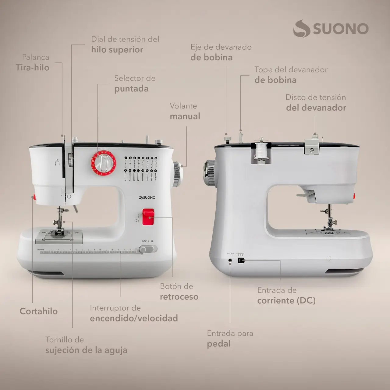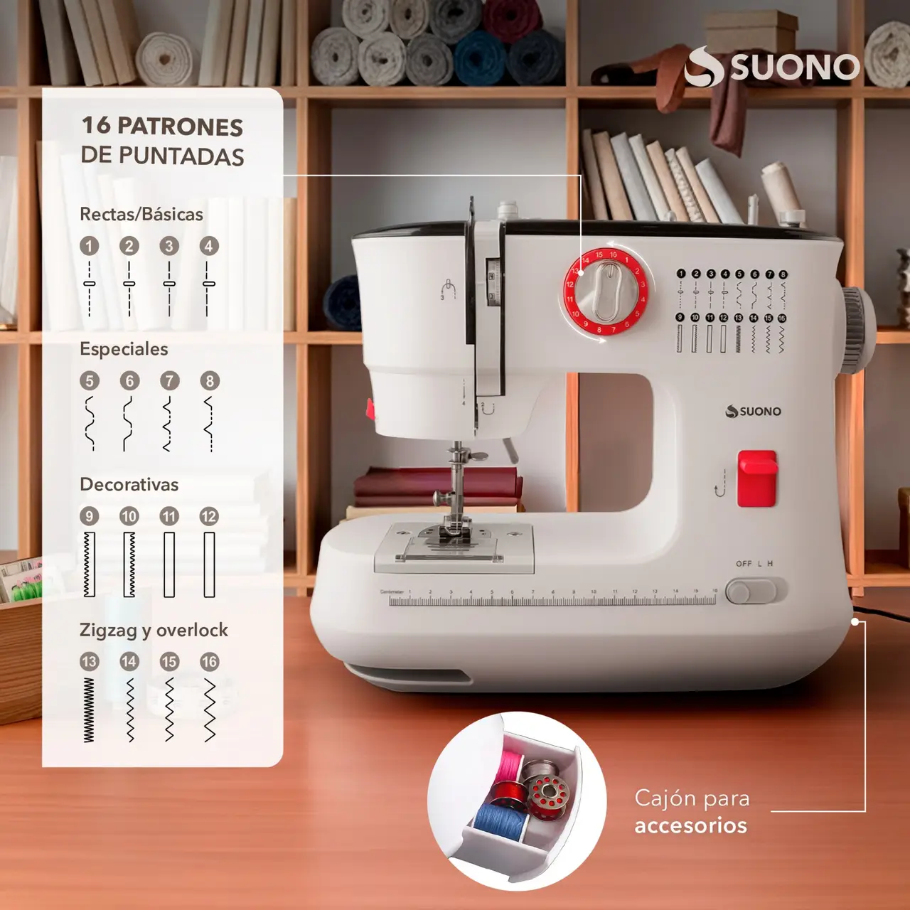 Doble hilo con puntada de seguridad 16 puntadas incorporadas Velocidades alta y baja