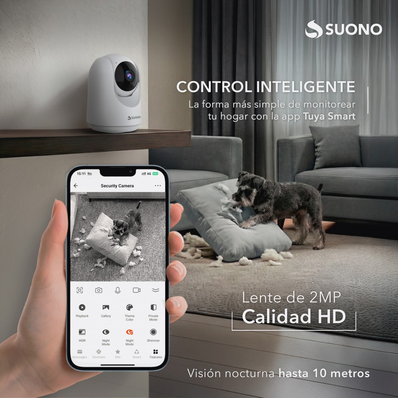 Lente de alta definición de 2 megapíxeles APP Tuya Smart Control de paneo 360 ° e inclinación de 60°