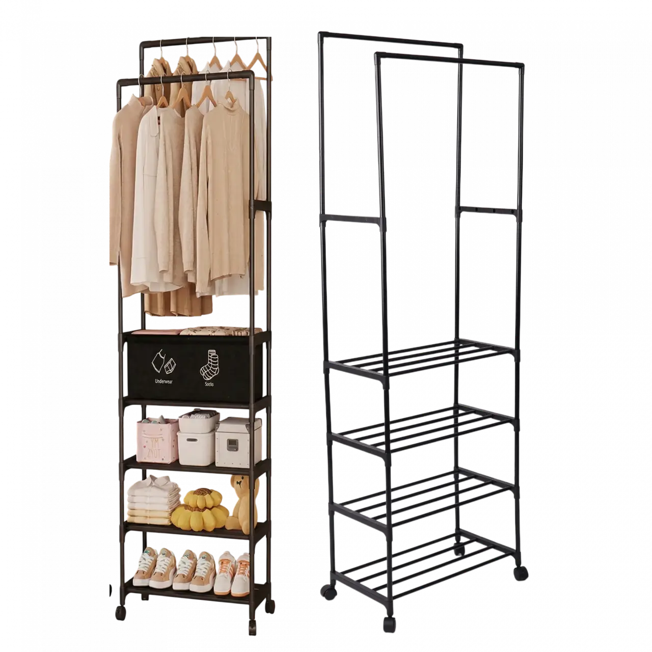 Organizador de interior para ropa o calzado, con barral para colgar. 4 Estantes Con ruedas