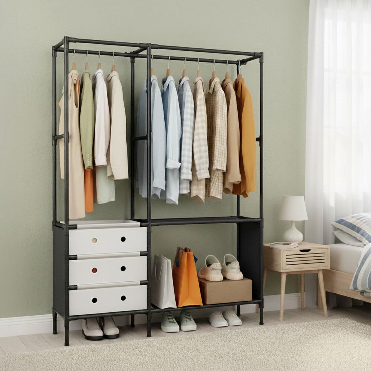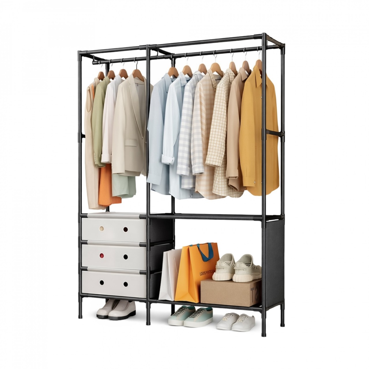 Organizador de interior para ropa o calzado, con barral para colgar. Medidas: 103 x 41 x 188 cm