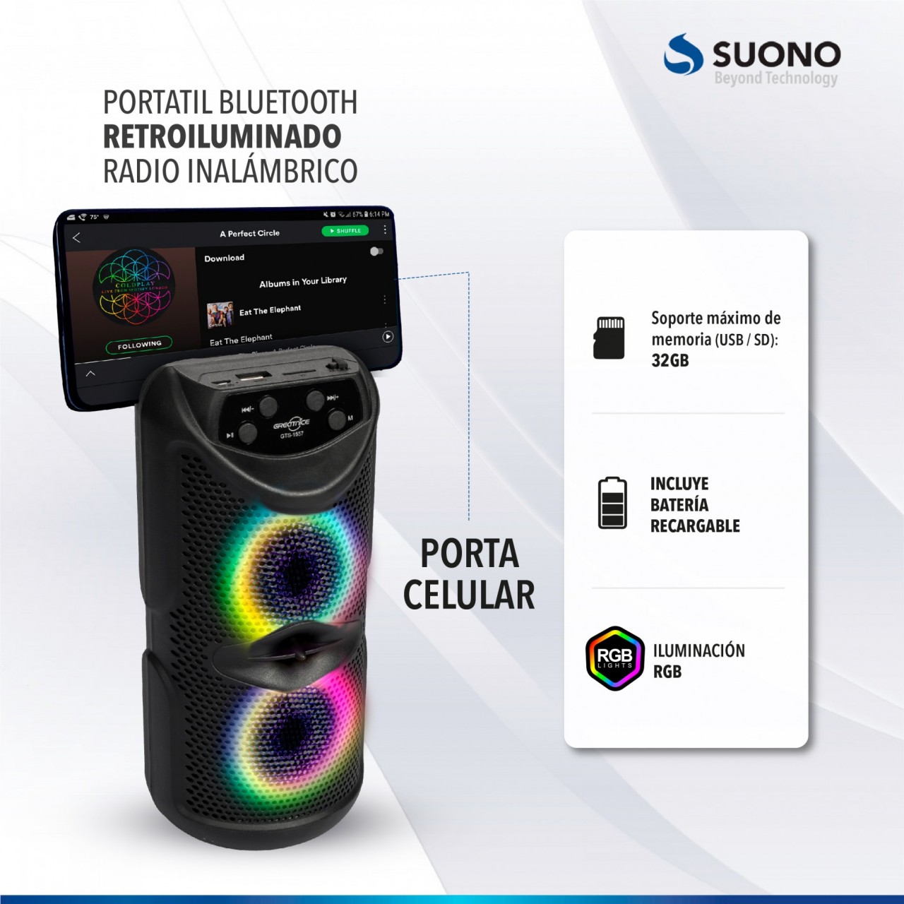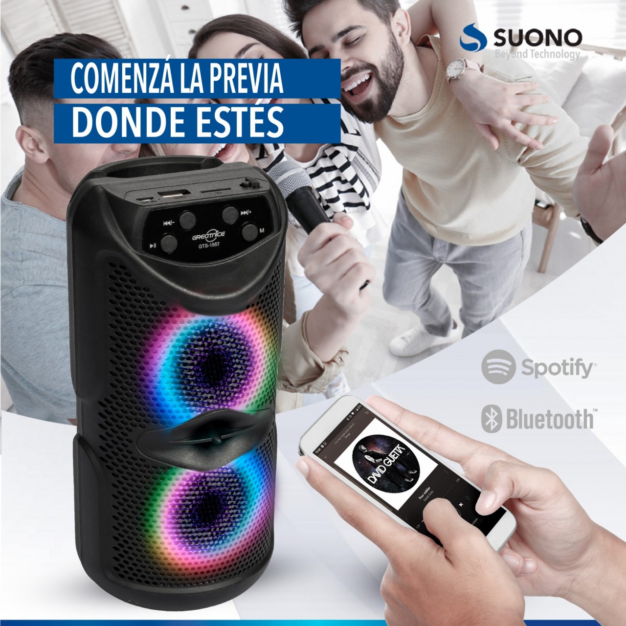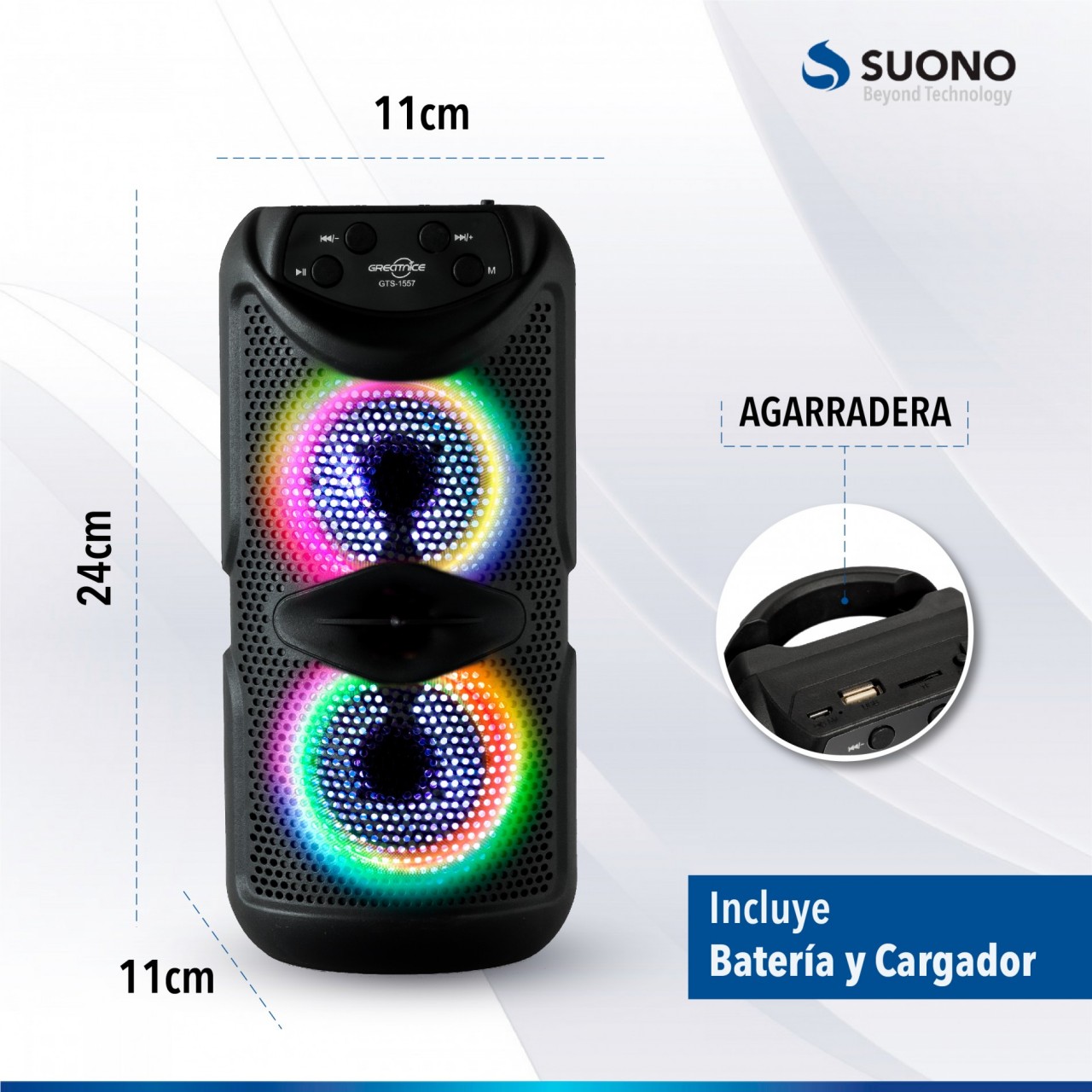 Parlante Portátil 2X3" Bluetooth Iluminación RGB Agarradera