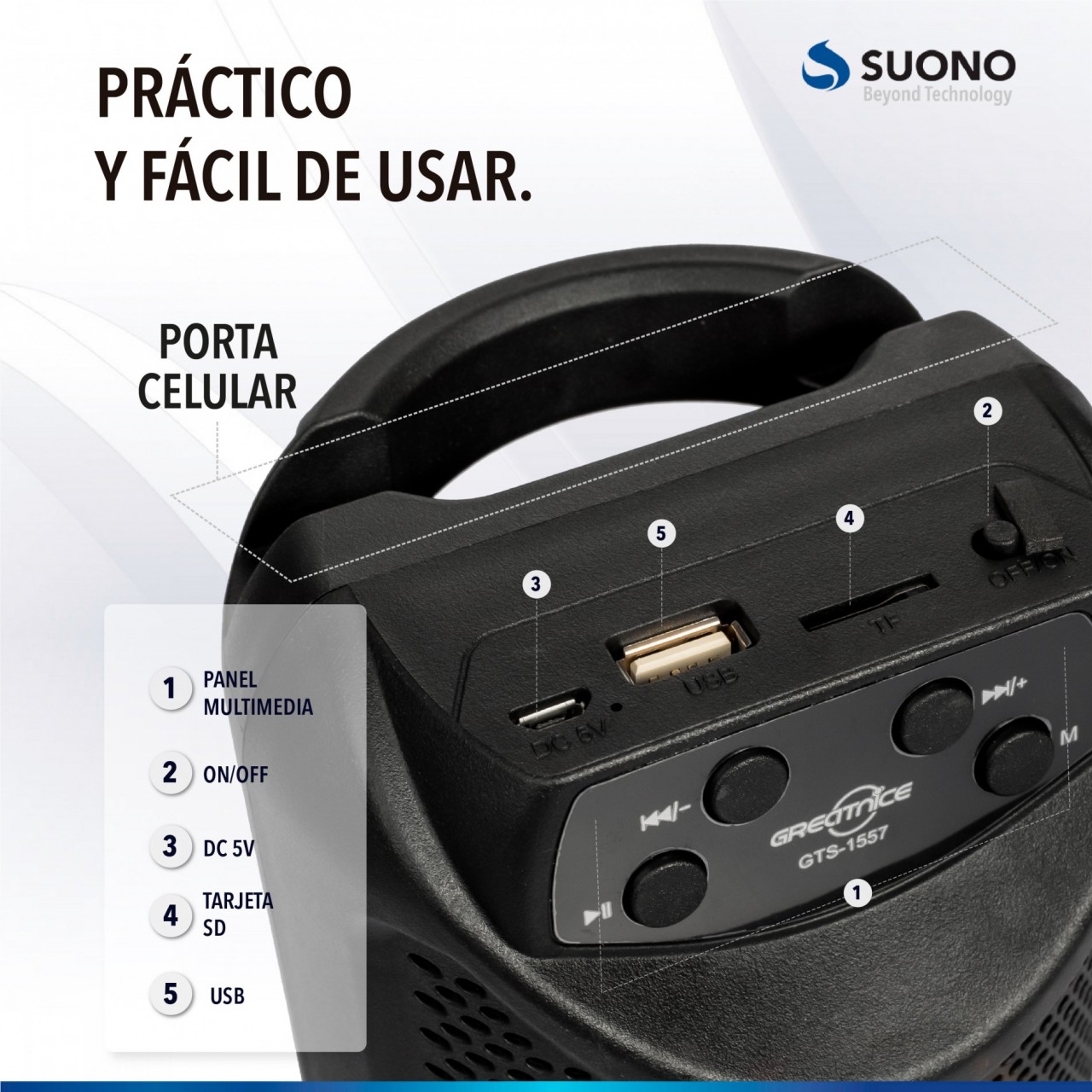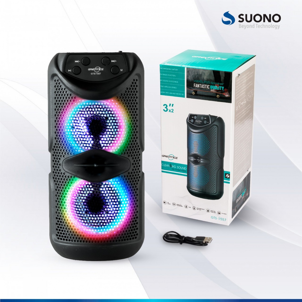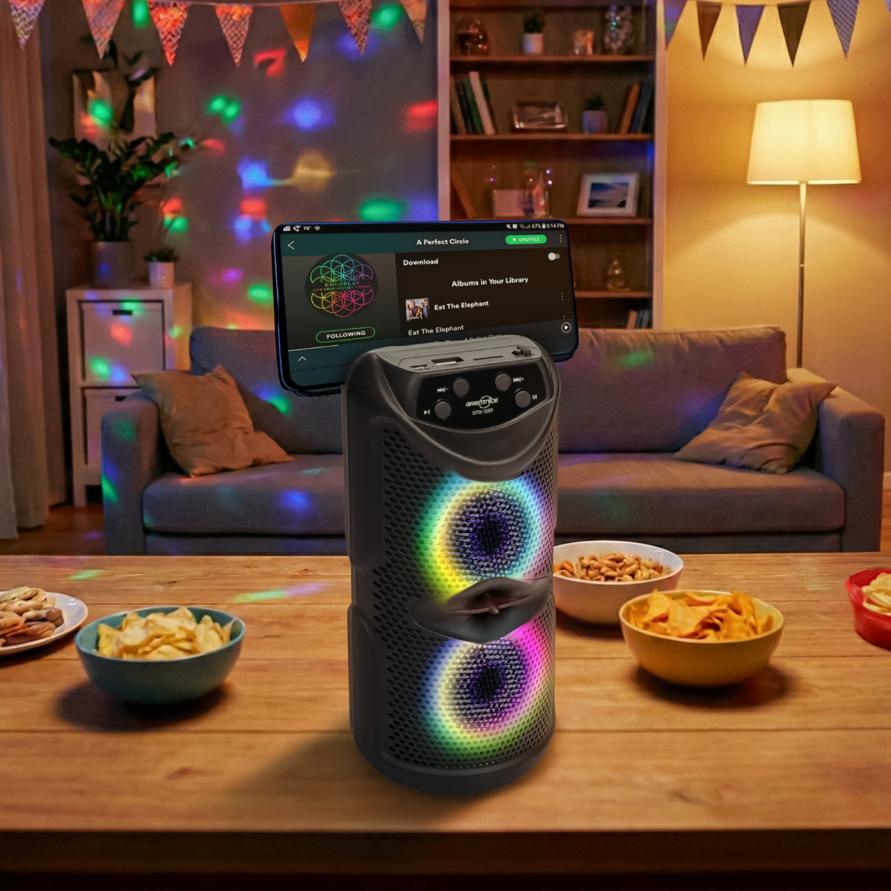Parlante Portátil 2X3" Bluetooth Iluminación RGB Agarradera