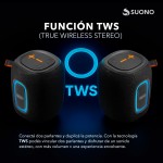 Wireless: 5.3 Batería: 3600mAh Potencia del altavoz: 1×15W Funciones: BT / Tarjeta TF / USB / AUX / Manos libres / Luz RGB / TWS Puerto de carga: Tipo C