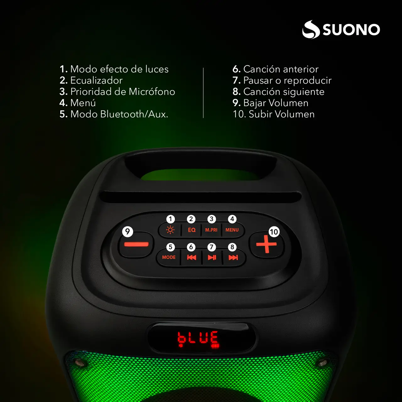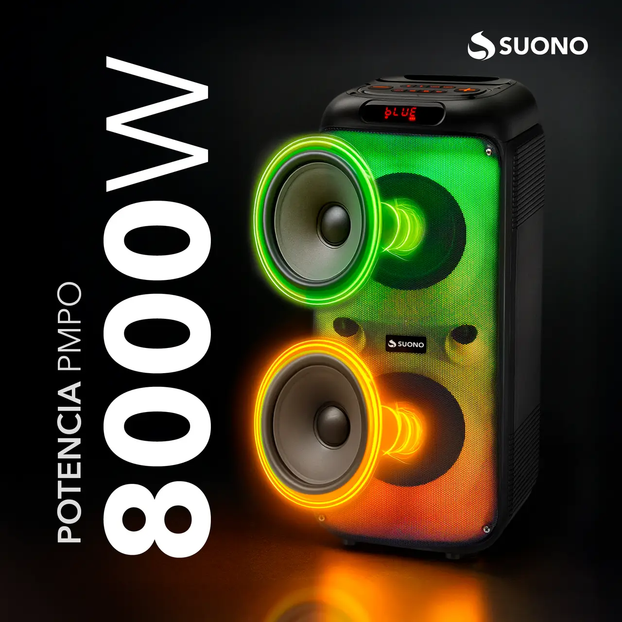 Parlante Suono 2 Woofers 6.5'' Luces Led Tws Rgb Bt