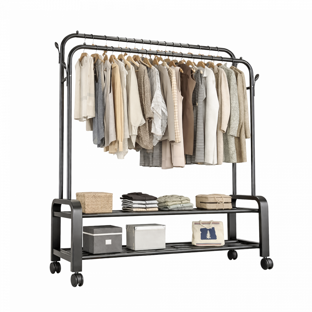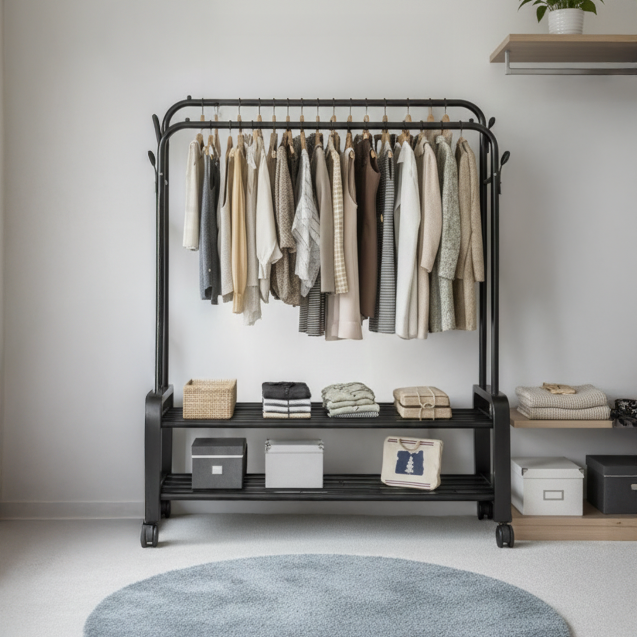 Organizador de interior para ropa o calzado, con barral para colgar. Medidas: 96 x 44 x 162 cm