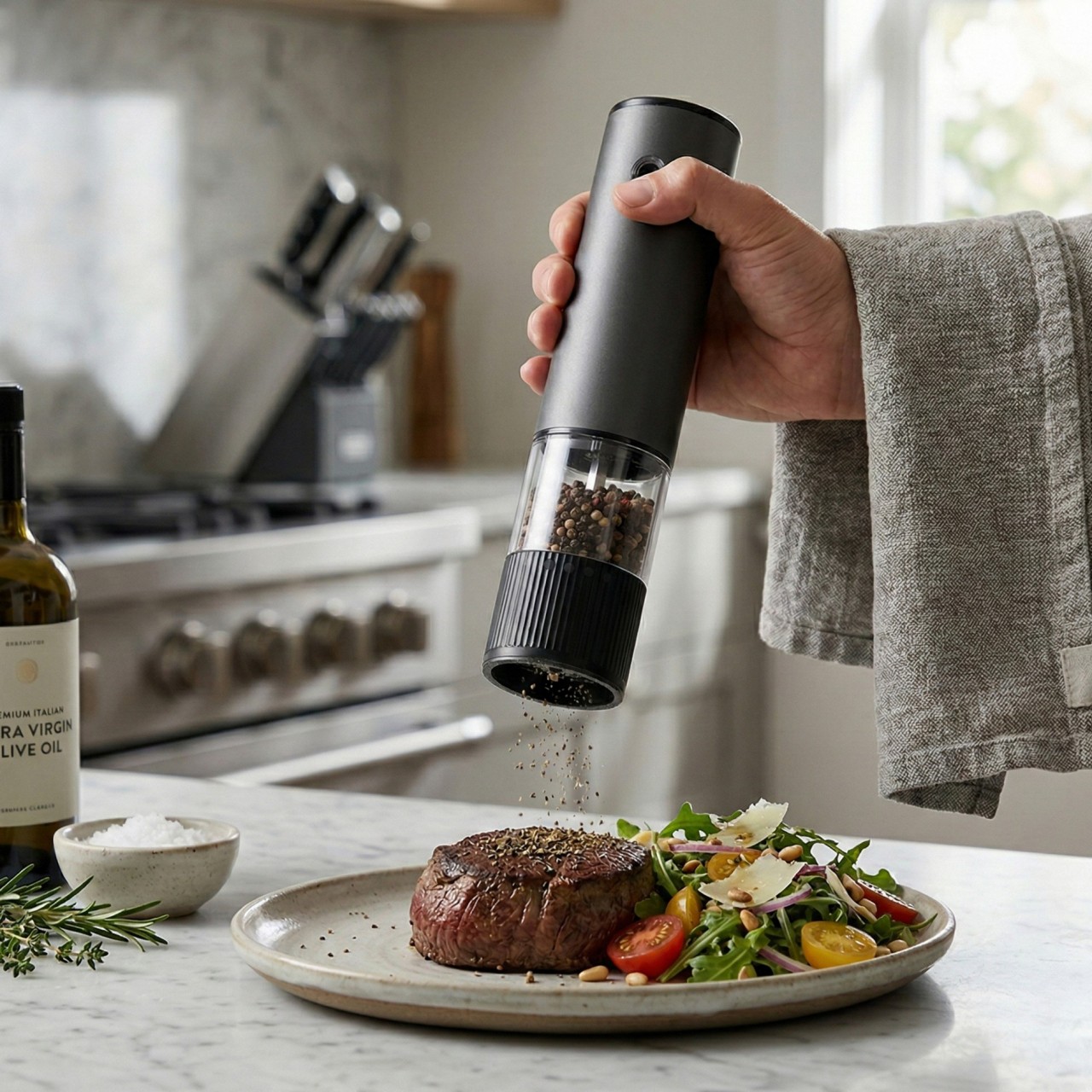 Depósito transparente para ver el nivel de condimento. Apto para pimienta, sal y diferentes especias.