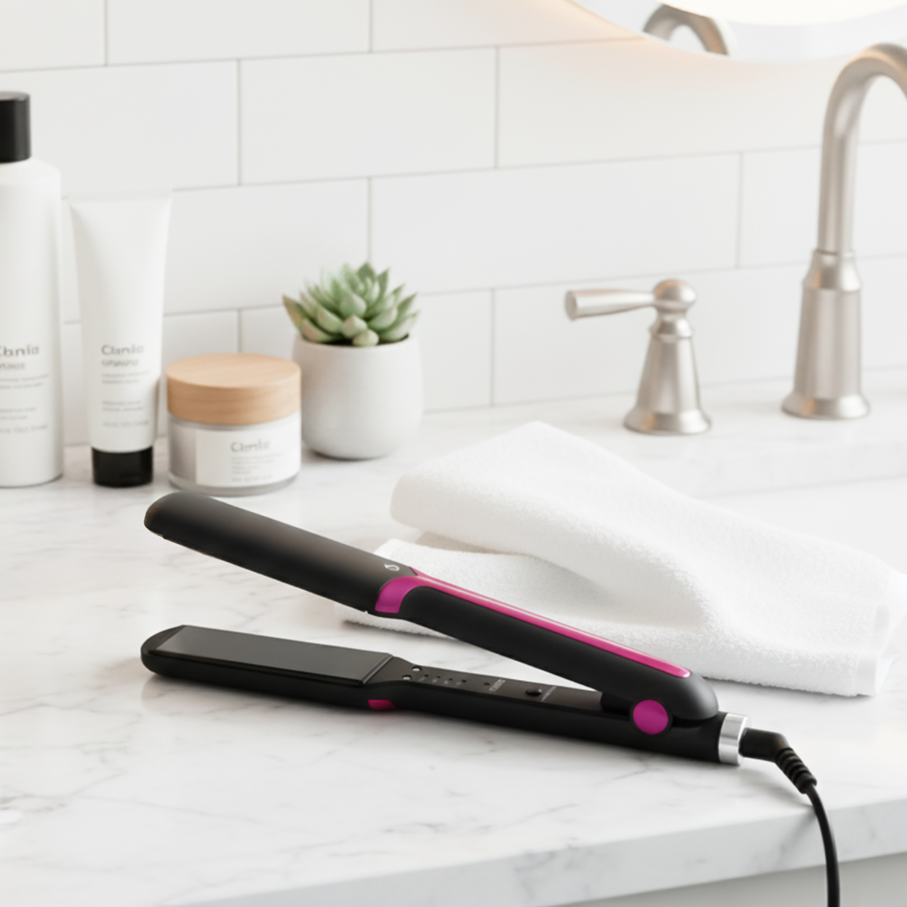 Planchita con tecnología de iones y calentamiento rápido en 30 segundos.