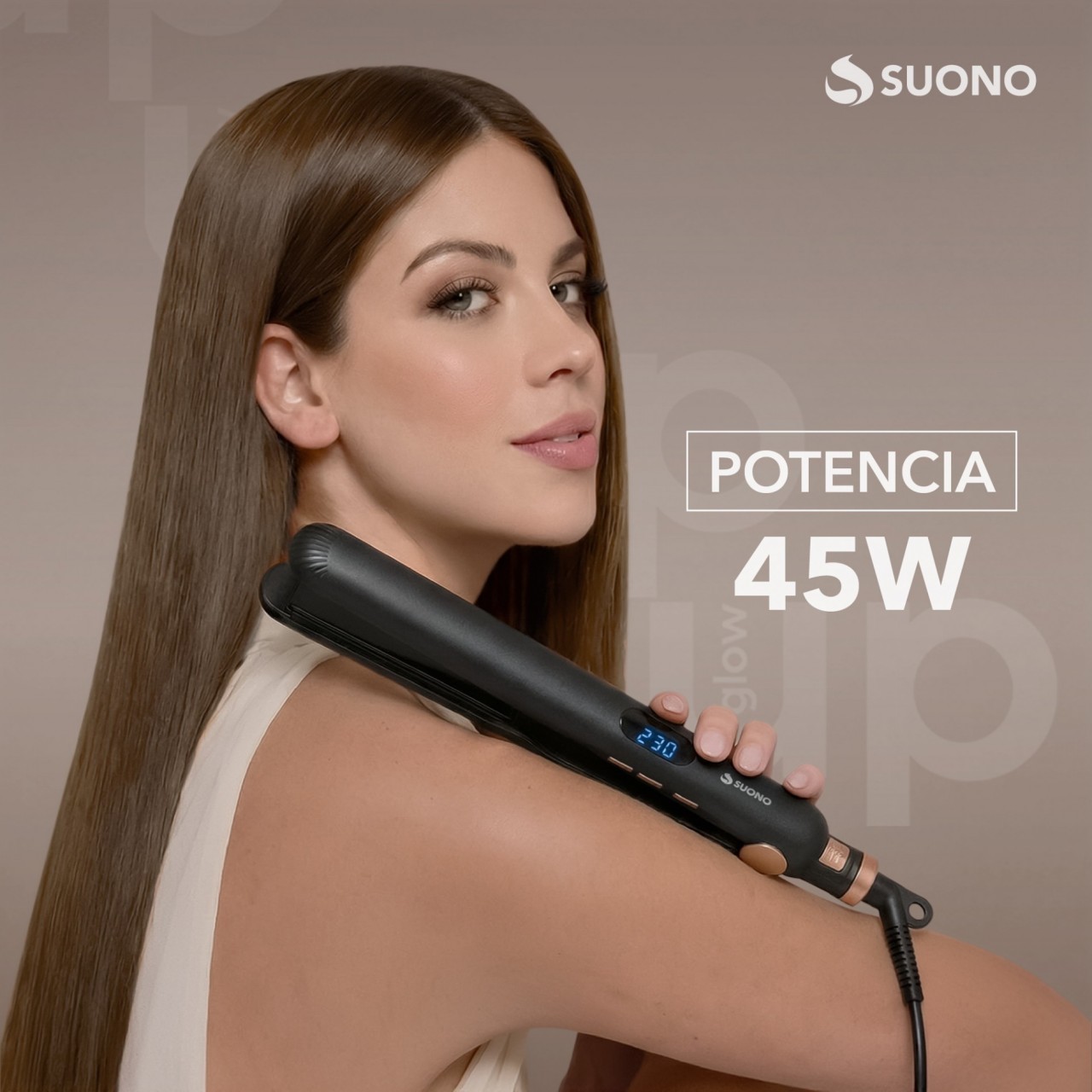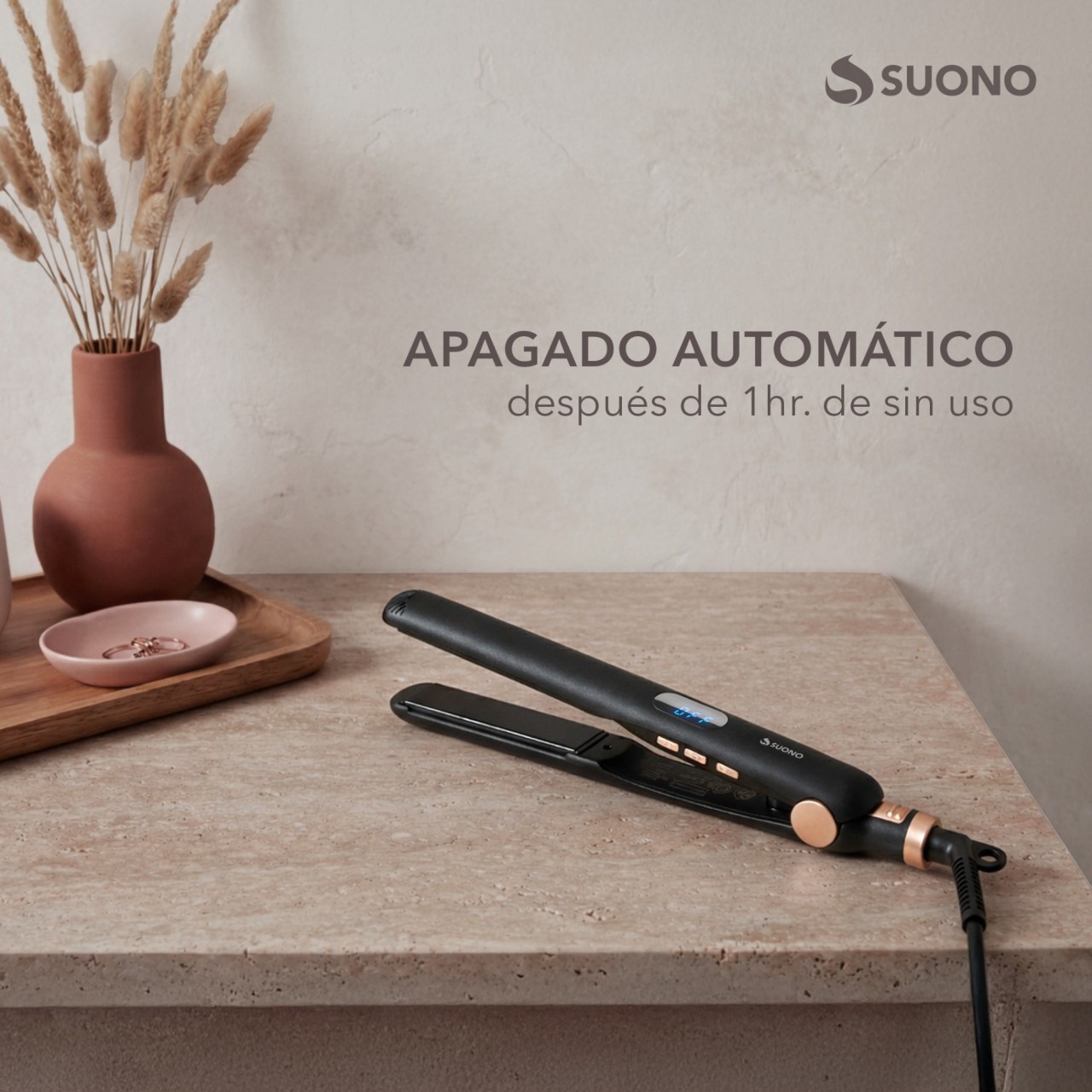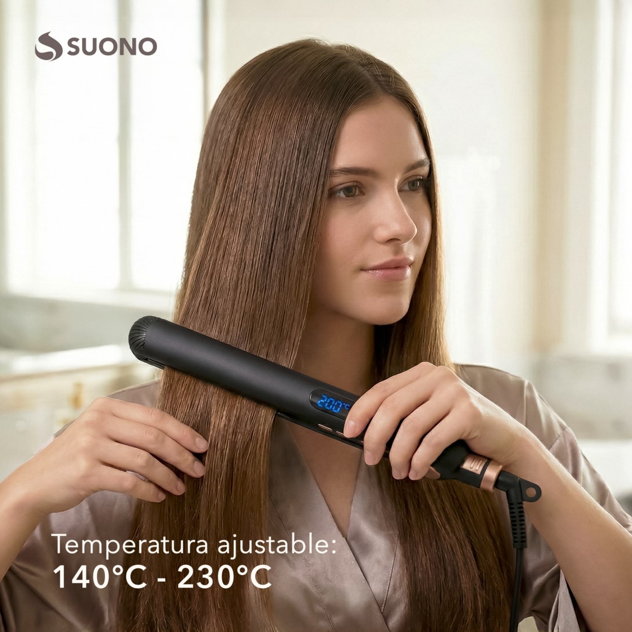 Planchita para cabello con ajuste de temperatura hasta 80°.