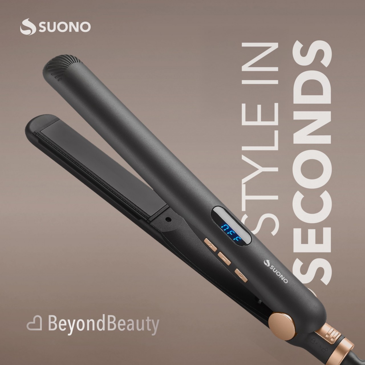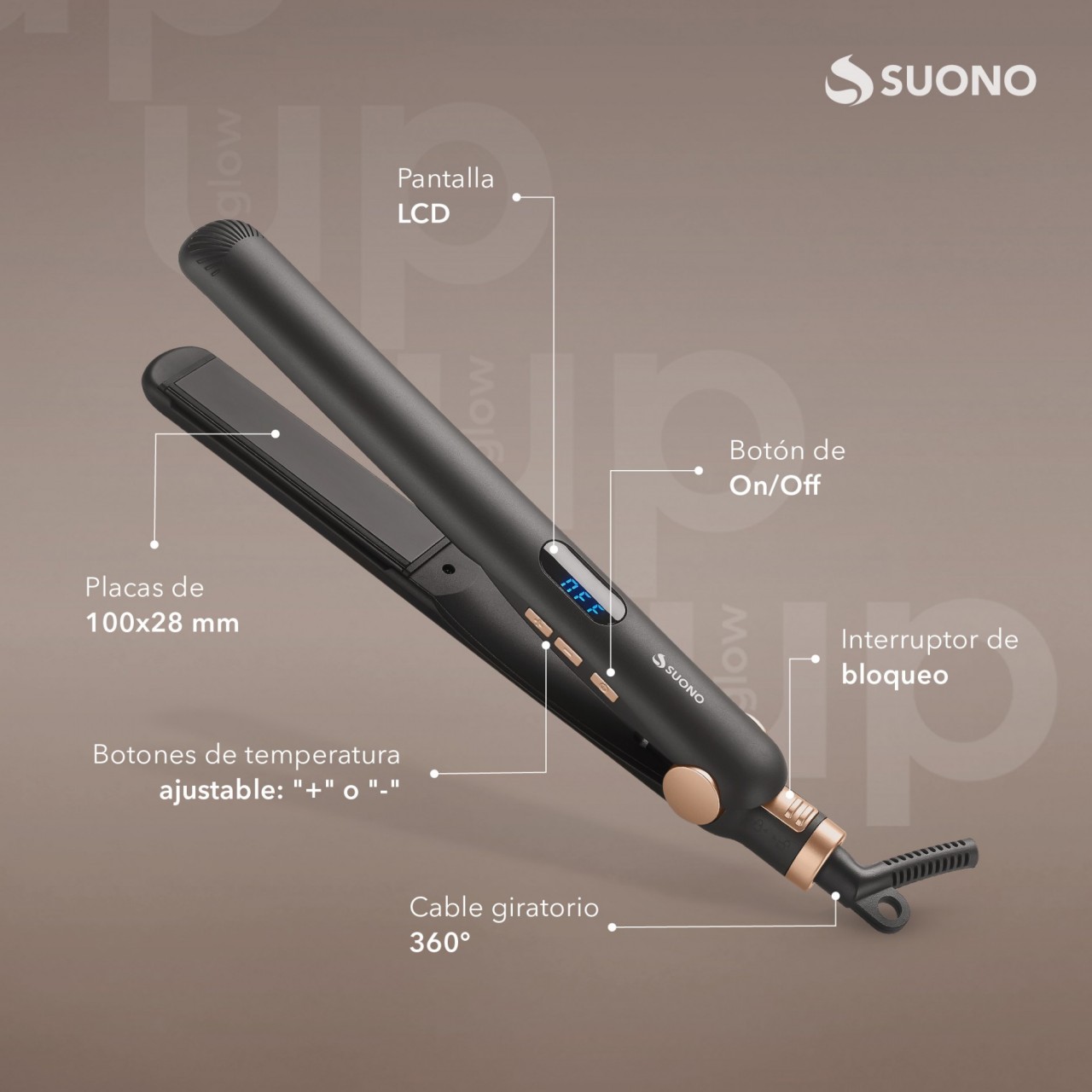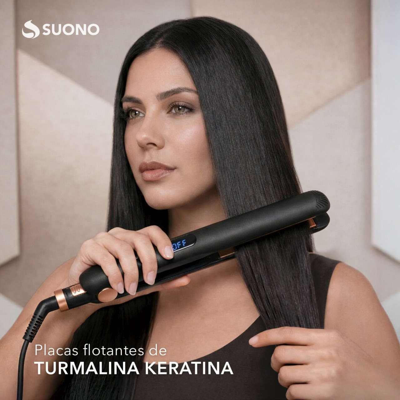 Planchita para cabello con ajuste de temperatura hasta 80°.