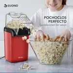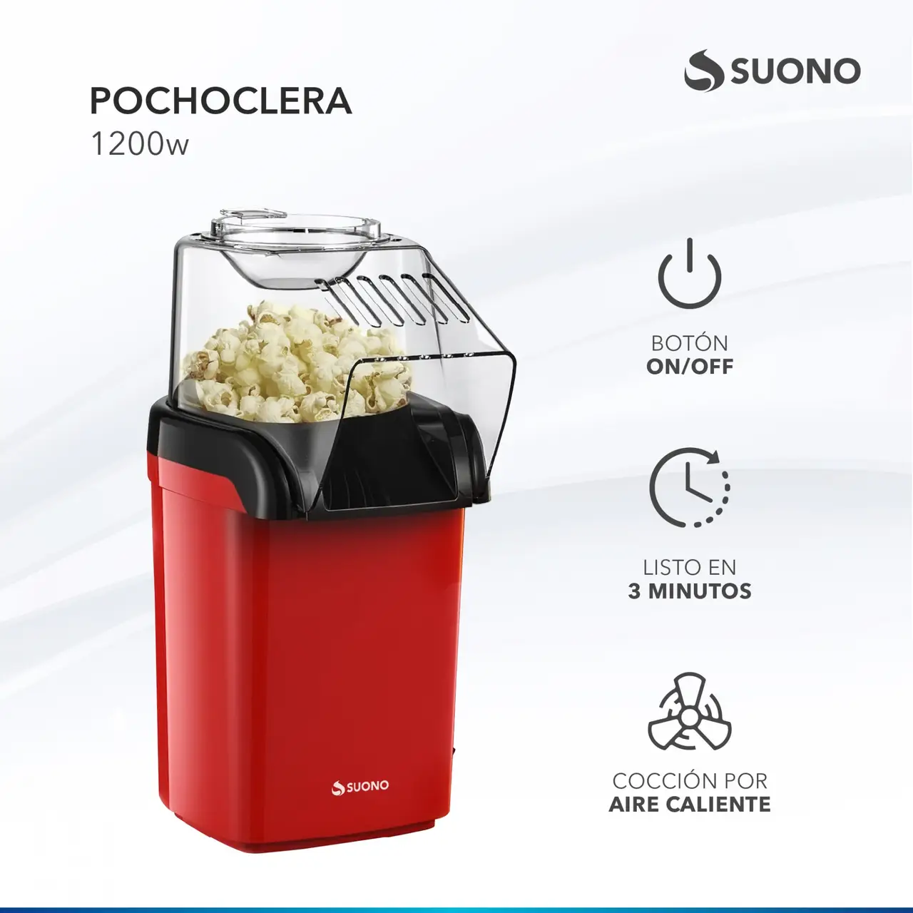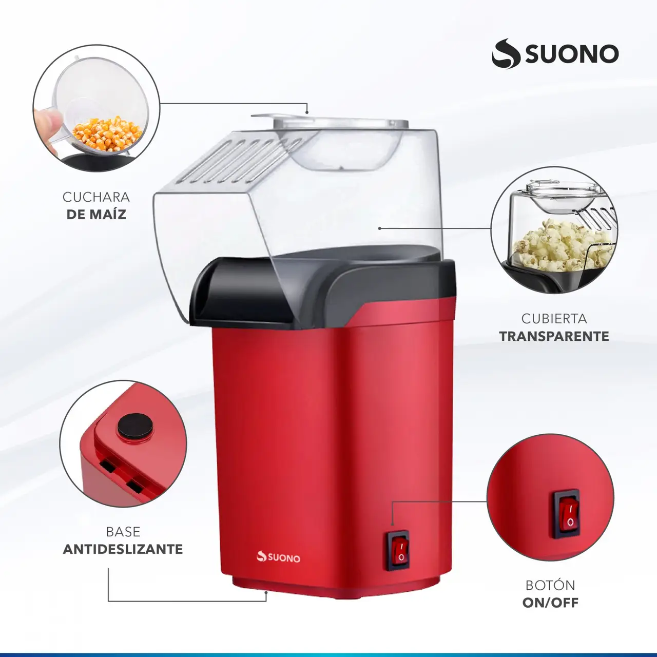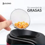 Tapa superior transparente Salida frontal pochoclos Interruptor lateral