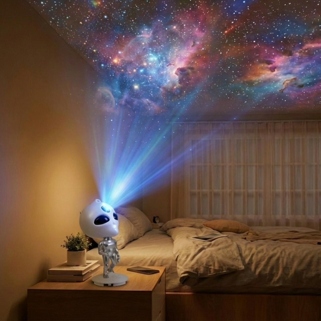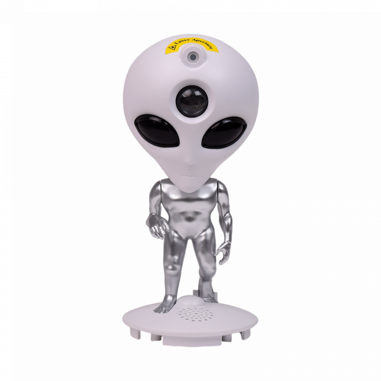 Cabeza giratoria 360° con control remoto y temporizador Graba y repite la voz con efecto “alien"