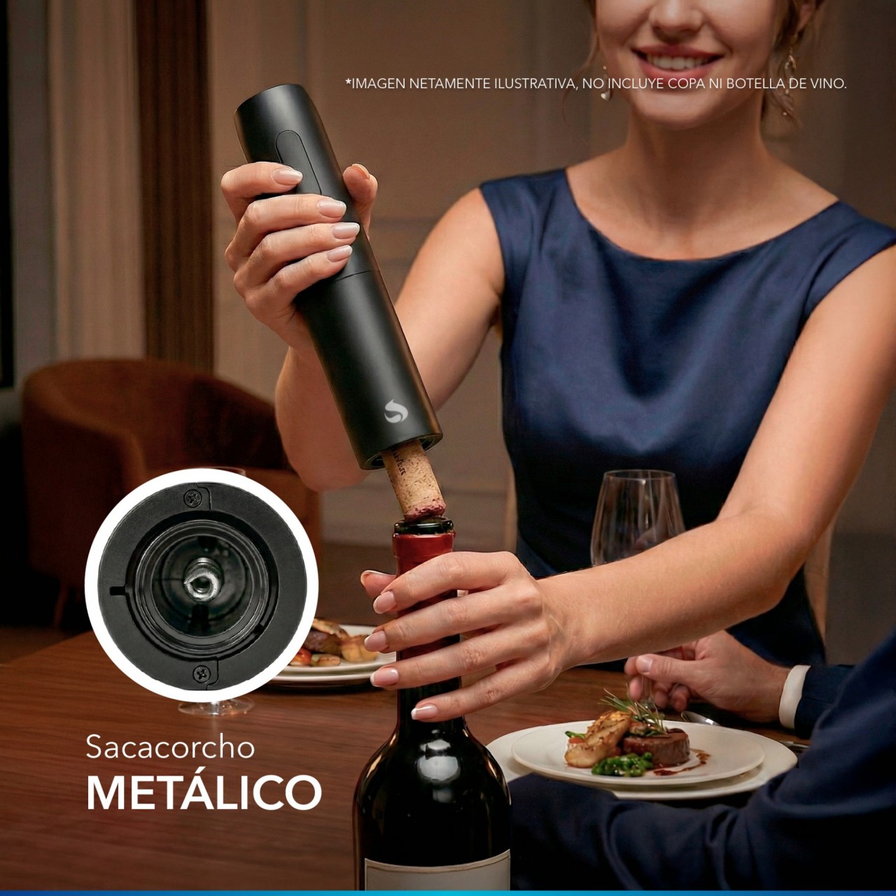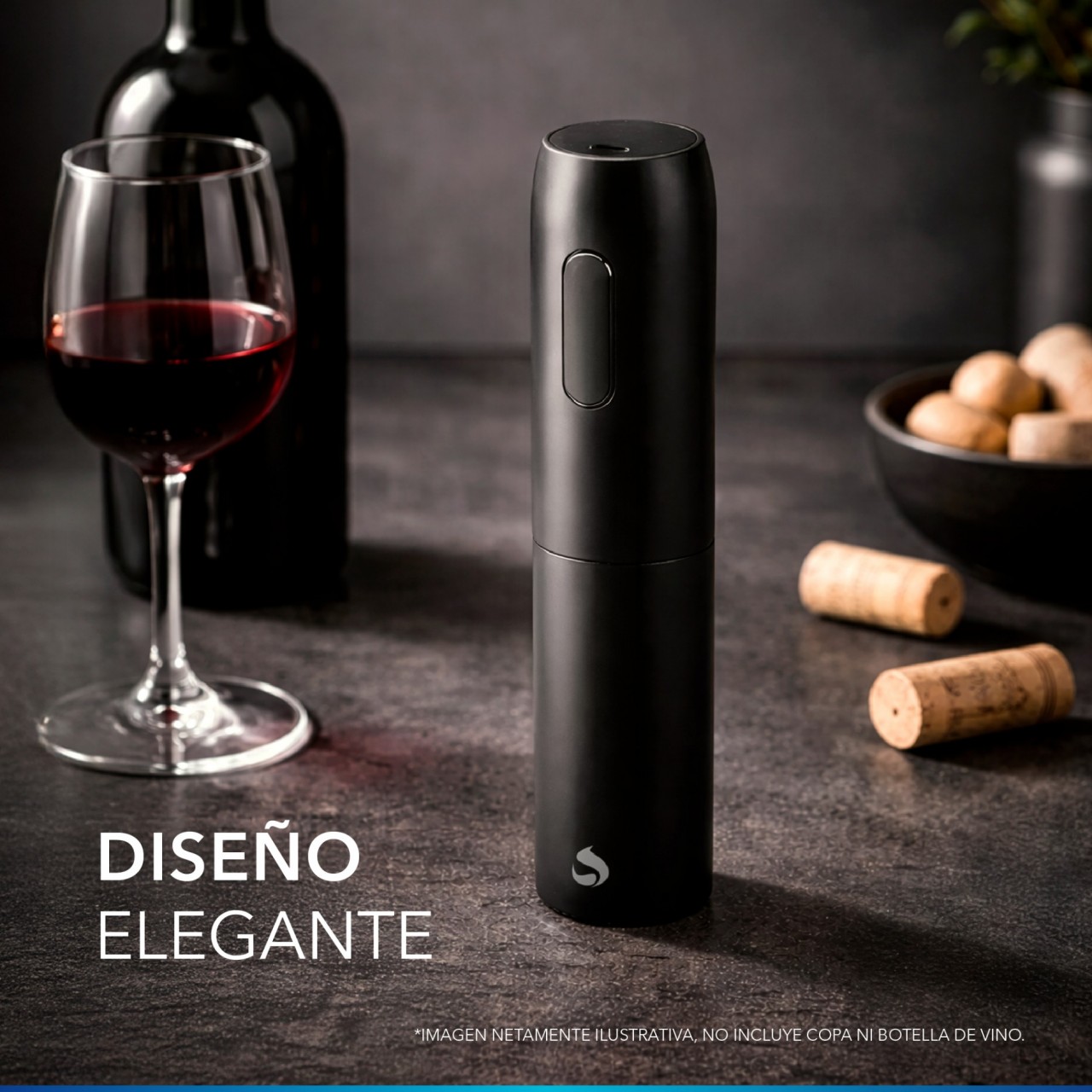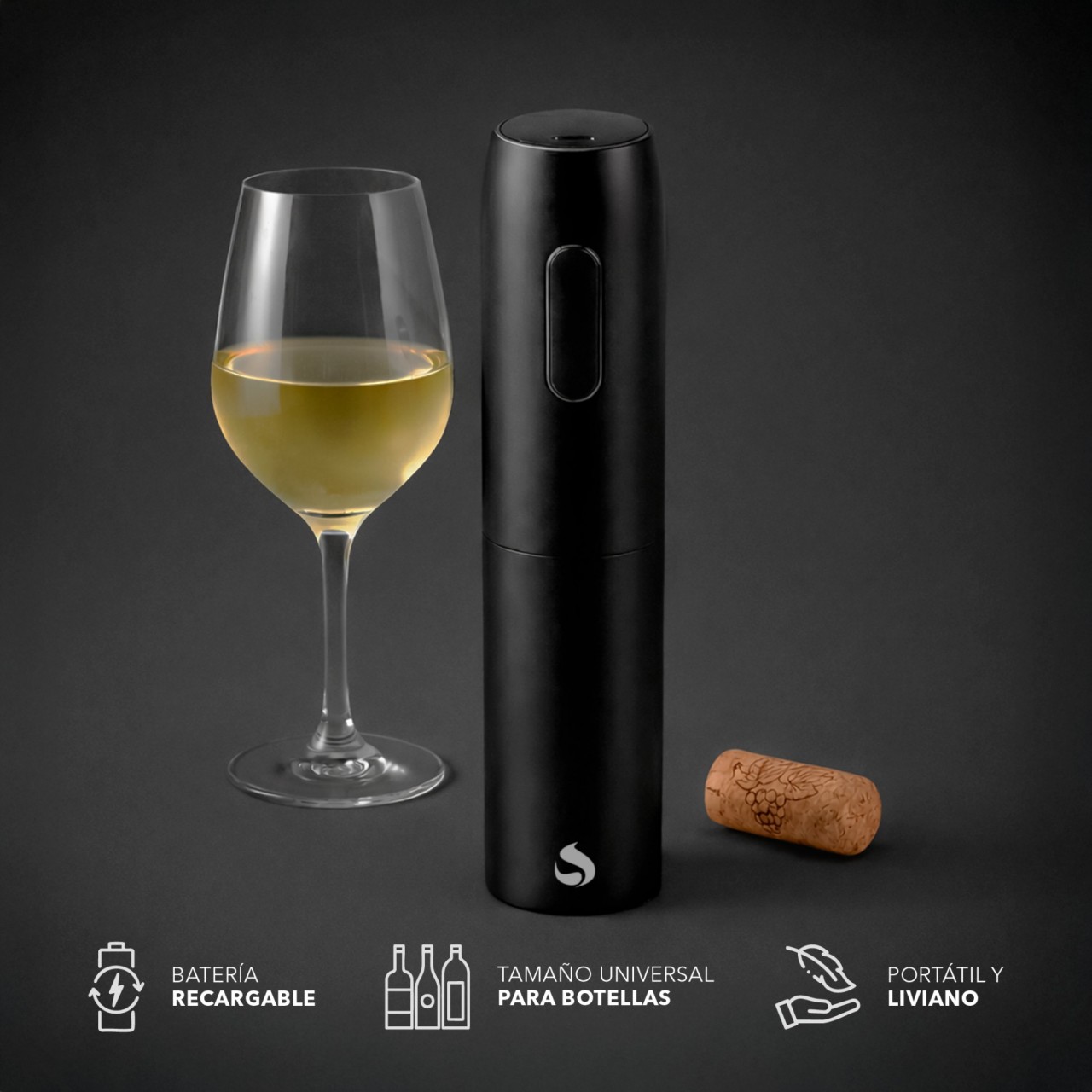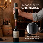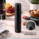 Sacacorcho automático recargable por USB para abrir botellas fácilmente.