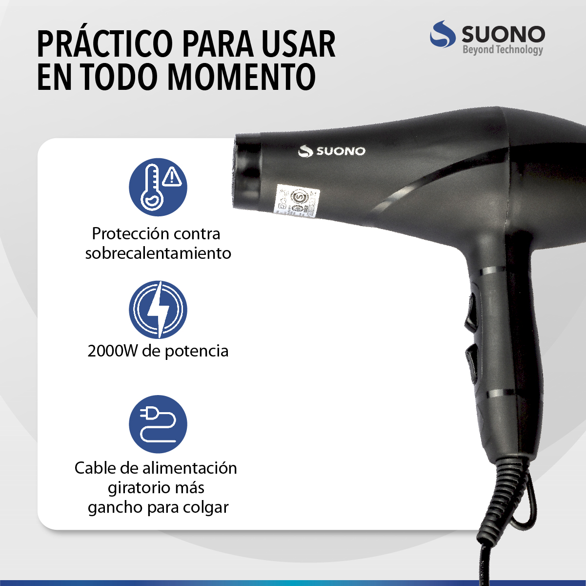 Secador De Pelo Suono Snpe-1003 2000W Frío Y Calor