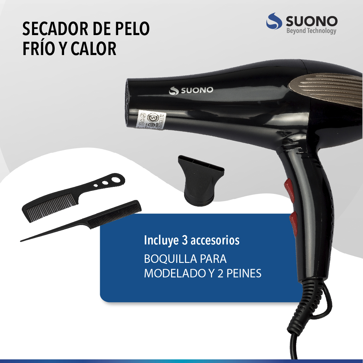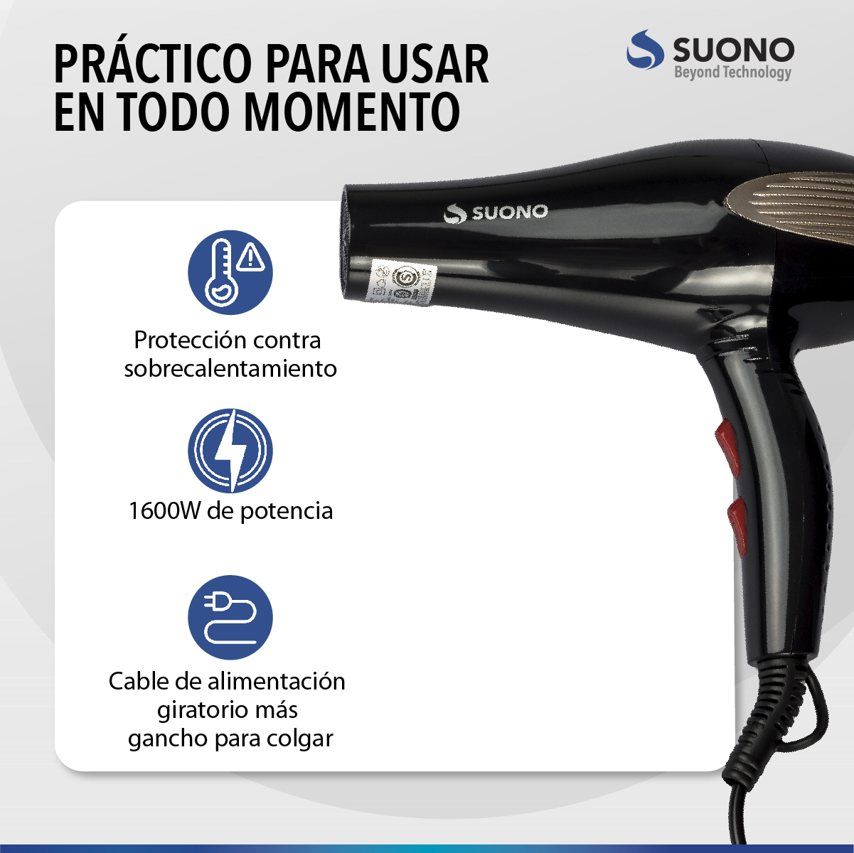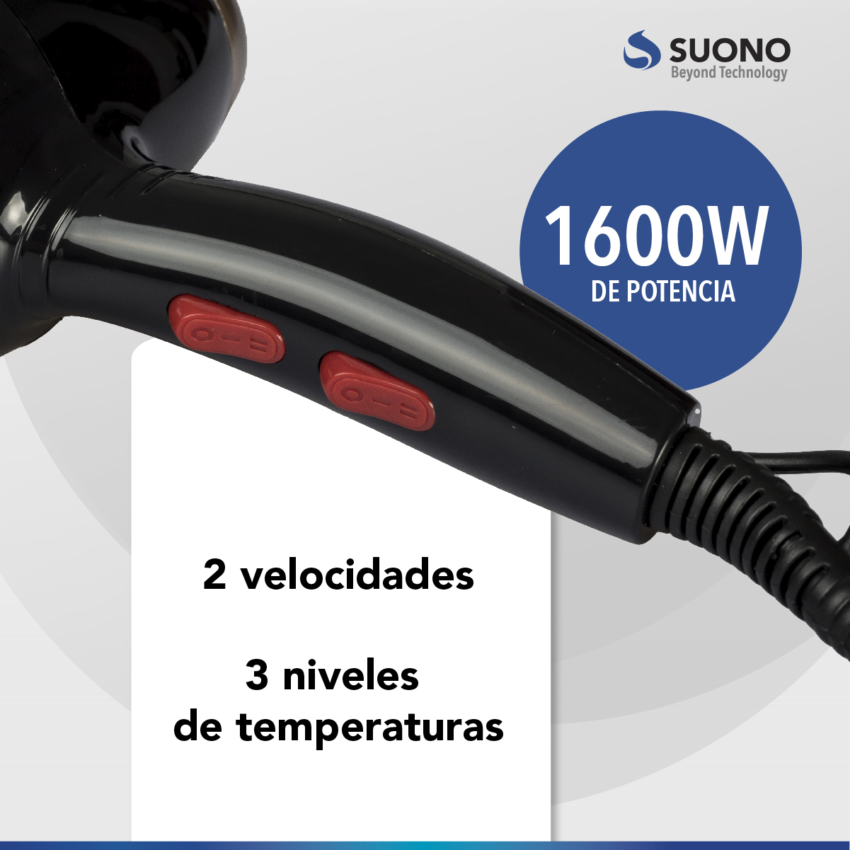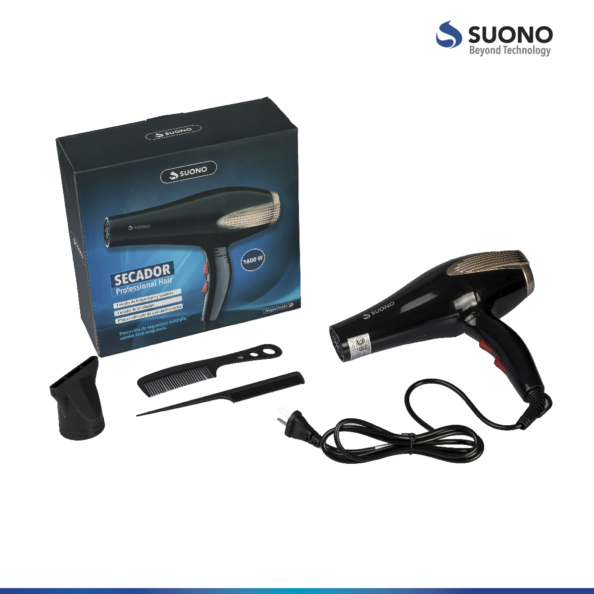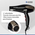Secador De Cabello Suono 1600W Potencia: 1600W. Con 2 Velocidades.