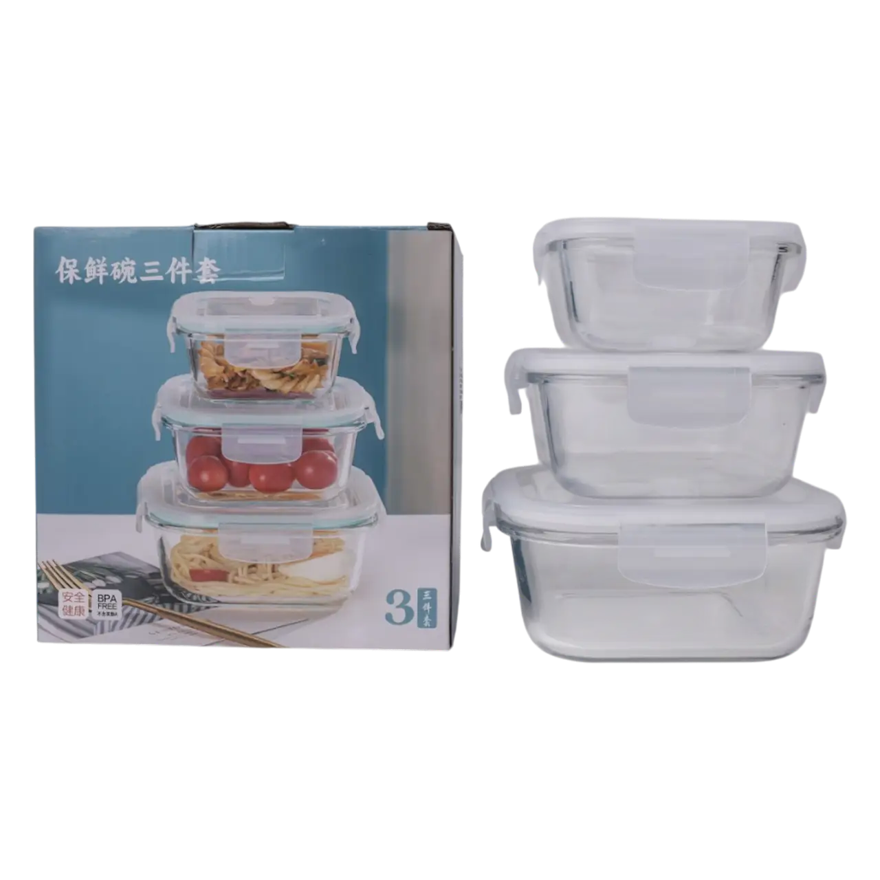 Set Herméticos Vidrio X3 Cuadr Transparente