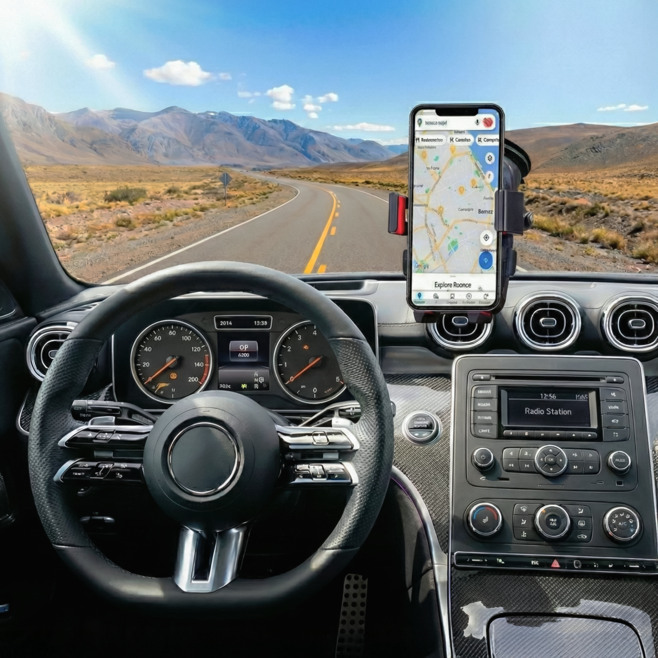Soporte con giro de 360°.Brazo extensible ajustable.Fijación fuerte con sopapa.
